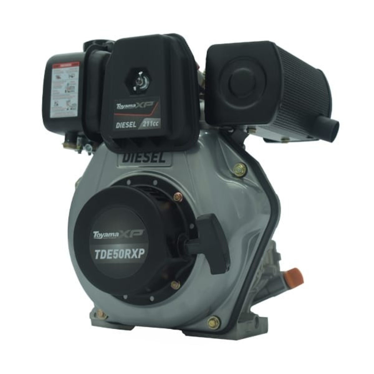 A Toyama apresenta a Linha de Motores XP. Este modelo de Motor a Diesel refrigerado a ar proporciona uma Potência Máxima de 5.0HP, Potência Nominal de 4.0HP e 211cc. A capacidade do tanque é de 2.2 Litros.Código: 019-035Informações TécnicasModelo TDE50RXPMotor DieselRefrigerado a ArCilindros: MonocilíndricoTipo do Motor: 4 TemposPotência Máxima 5.0 HPPotência Nominal 4.0 HPCilindrada 211 ccCapacidade do Tanque 2.2 L Capacidade do Óleo 0,8 LÓleo Recomendado 15W40Rotação Máxima 3600 RPMFiltro de Ar Duplo ElementoSistema de Partida R Manual RetrátilKit Ferramentas: SIMRotação Do Eixo: 1800 RPMTaxa De Redução: 2:1