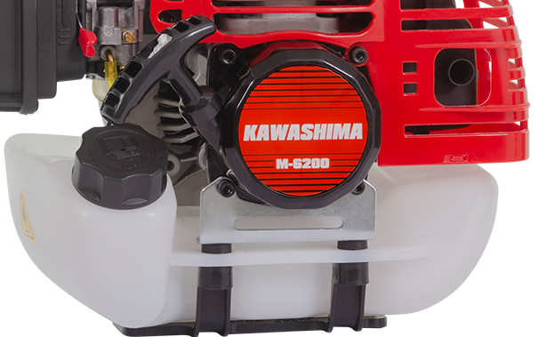 MOTOR M-6200 KAWASHIMA 61,5cc TIPO: Motor 2 tempos MOTOR: KAWASHIMA M-6200 TIPO DO MOTOR: Monocilindrico, 2 tempos, refrigerado a ar, gasolina CILINDRADAS: 61,5cc TIPO DE CARBURADOR: Diafragma, com regulagem VELA DE IGNIÇÃO: KAWASHIMA KNP6Y e NGK BPM6A (modelos recomendados para reposição) COMBUSTÍVEL: Gasolina e óleo 2T (25:1) CAPACIDADE DO TANQUE DE COMBUSTÍVEL: 1,2 L