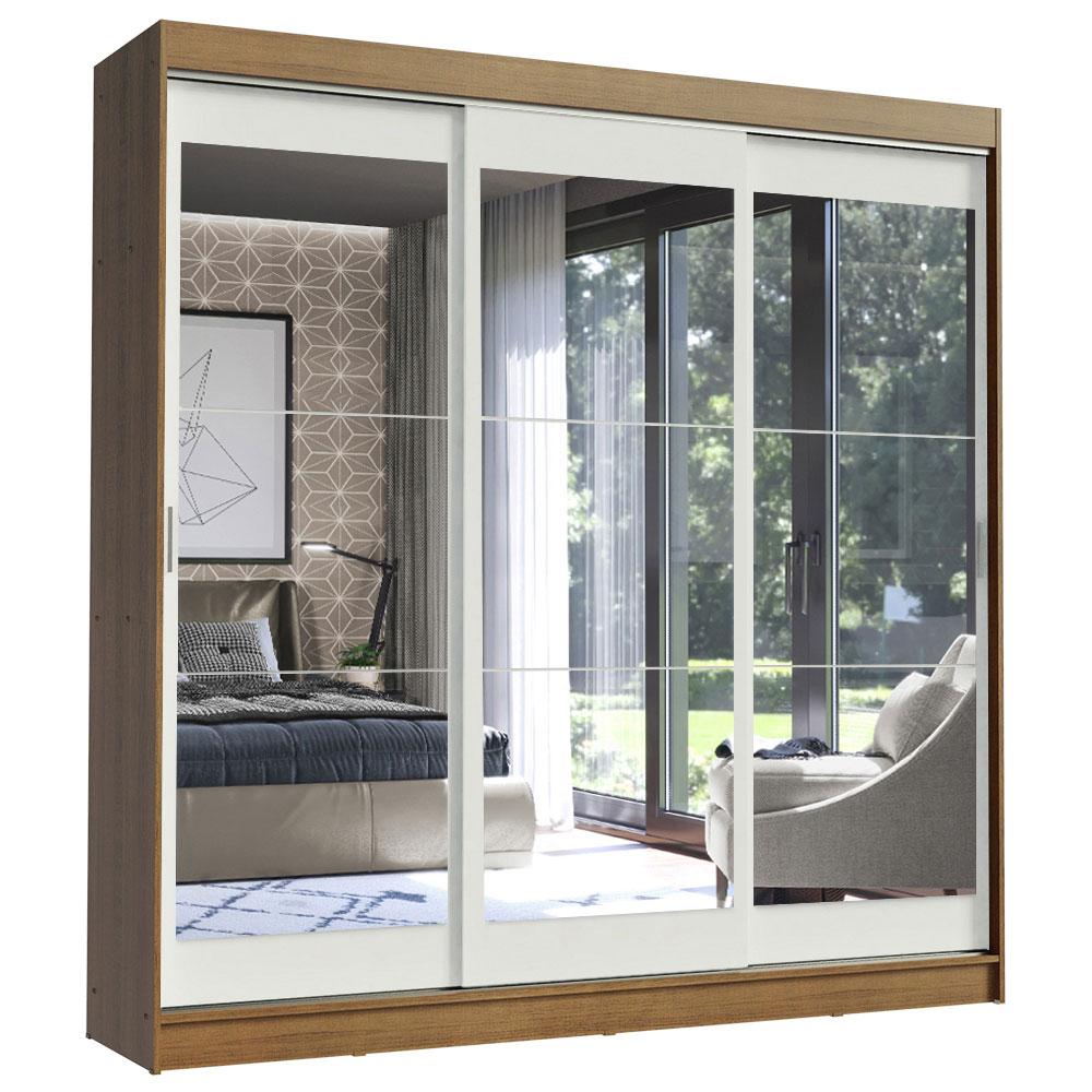 Guarda-Roupa Casal Madesa Istambul 3 Portas de Correr de Espelho 3 Gavetas - Rustic/Branco