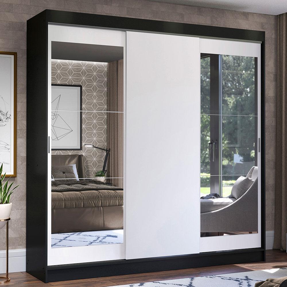Guarda-Roupa Casal Madesa Istambul 3 Portas de Correr com Espelhos 3 Gavetas - Preto/Branco