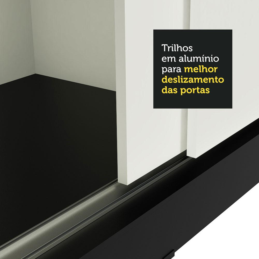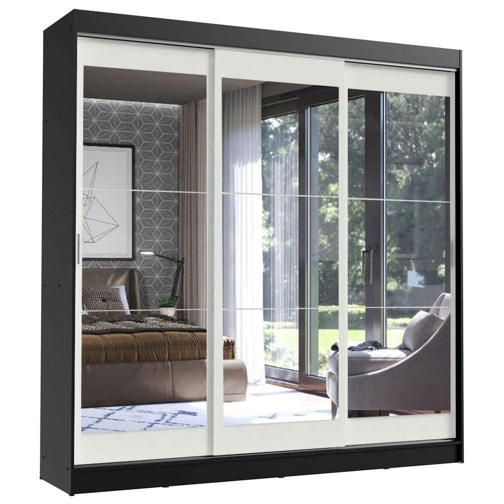 Guarda-Roupa Casal Madesa Istambul 3 Portas de Correr de Espelho 3 Gavetas - Preto/Branco