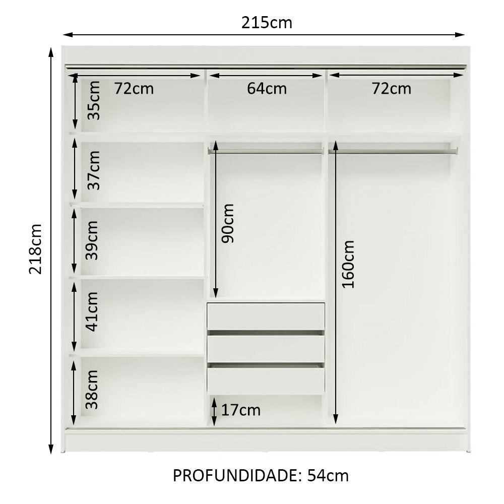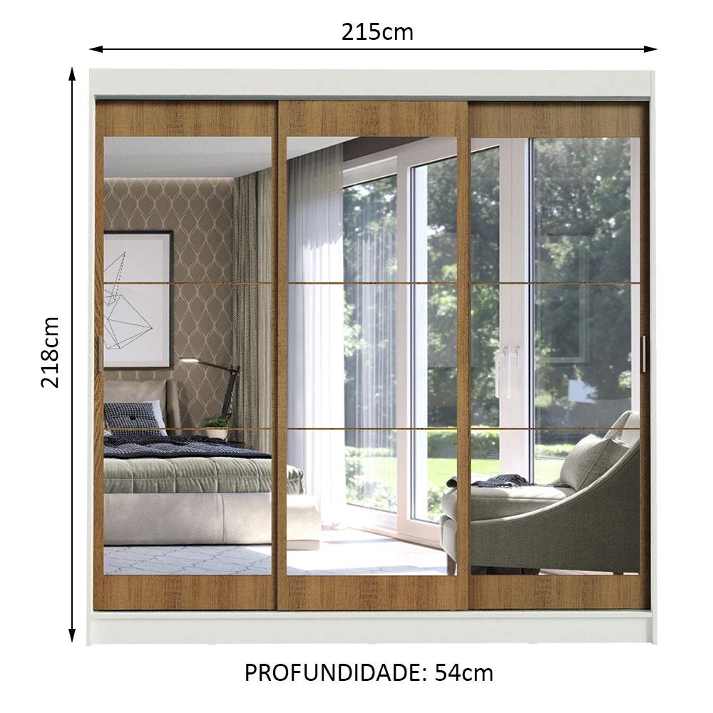 Com tamanho ideal para casal, o Guarda-Roupa Istambul da Madesa possui três portas de correr com deslizamento suave, trilhos em alumínio para maior resistência e dois puxadores externos.Um dos principais diferenciais desta versão é que todas as portas possuem espelhos, que ampliam o ambiente e são bastante práticos no dia a dia. Internamente, o espaço é ótimo, com diversas prateleiras e nichos, além de três gavetas espaçosas com corrediças metálicas, muito mais seguras e resistentes.Para completar, os dois cabideiros são em alumínio e possuem espaços tanto para roupas curtas quanto mais longas. Ou seja, tem lugar pra organizar tudo: roupas, calçados, malas, travesseiros, edredons e muito mais.O acabamento da estrutura é branco e as portas são em amadeirado Rustic. É feito com a Pintura Poliéster exclusiva da Madesa. Esse processo é ecologicamente correto e conserva o móvel por muito mais tempo.Medidas totais do móvel: 218 cm de altura x 215 cm de largura x 54 cm de profundidade.As imagens são meramente ilustrativas.Itens inclusos:- Três (3) portas de correr com sistema anti-descarrilhamento, todas com espelhos- Dois (2) puxadores em alumínio com detalhes em PVC- Três (3) gavetas internas com corrediças metálicas- Dois (2) cabideiros em alumínioCódigo do produto: 11189B3EObs.: A Madesa não disponibiliza serviço de montagem. A embalagem acompanha as ferragens necessárias e o manual com todos os passos para a instalação do produto.1 – O produto é novo ou usado?R.: Todos os produtos da Madesa são novos, enviados da nossa fábrica diretamente para as casas de nossos clientes.2 – O produto vem montado? Se não, vocês realizam a montagem?R.: A Madesa não disponibiliza serviço de montagem. Todos os produtos seguem com manual de instalação e as ferragens necessárias. Alguns produtos possuem vídeo explicando o passo a passo da montagem.3 – Vocês possuem loja física? Posso retirar meu produto em mãos?R.: Não possuímos loja física, apenas loja virtual. Confira as opções de envio ao colocar o seu CEP.4 – Qual é o valor do envio? Posso pagar separadamente?R.: O valor do envio é calculado com base no peso e volume do produto, e no CEP de destino. Você pode calcular o valor e prazo de entrega no simulador.5 – A Madesa entrega em todo Brasil? Como é feita a entrega?R.: Sim, entregamos no Brasil inteiro através de transportadoras parceiras.6 – O produto acompanha Nota Fiscal?R.: Sim, todos os produtos são entregues com suas respectivas notas fiscais.7 – Os produtos possuem garantia?R.: Sim. A Madesa oferece 3 meses de garantia para defeitos de fabricação.A Madesa se dedica à sustentabilidade com várias iniciativas: temos uma usina própria para gerar energia que abastece uma de nossas fábricas. Selecionamos nossos fornecedores, priorizando aqueles que possuem um compromisso com a sustentabilidade e proteção do meio ambiente. Todo o plástico utilizado no setor produtivo é proveniente de reciclagem e as suas sobras são encaminhadas ao fornecedor que os recicla. Também investimos no desenvolvimento contínuo de nossos colaboradores e em ações educacionais que beneficiem a comunidade.