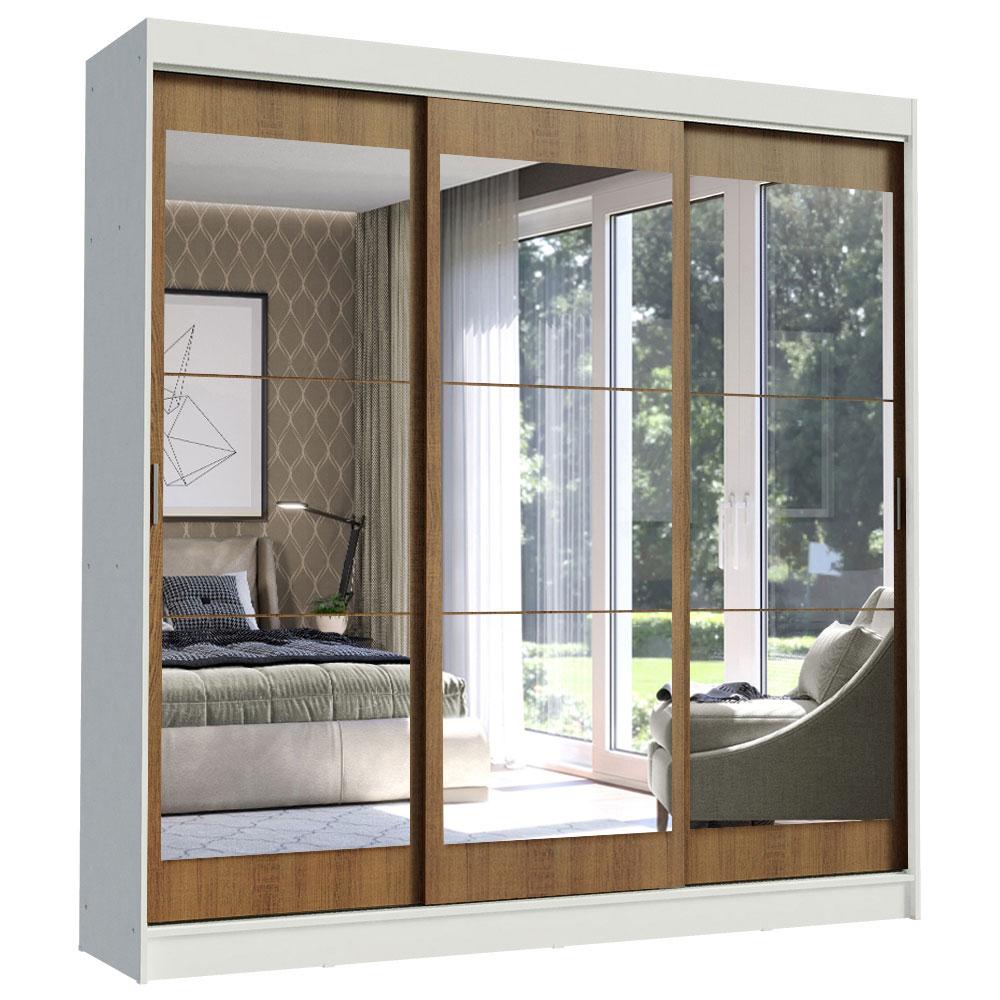 Guarda-Roupa Casal Madesa Istambul 3 Portas de Correr de Espelho 3 Gavetas - Branco/Rustic
