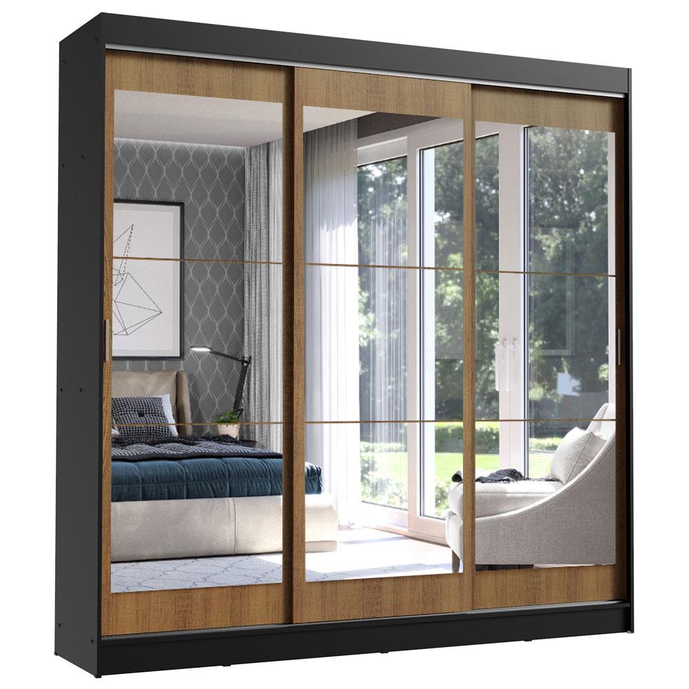Guarda-Roupa Casal Madesa Istambul 3 Portas de Correr de Espelho 3 Gavetas - Preto/Rustic