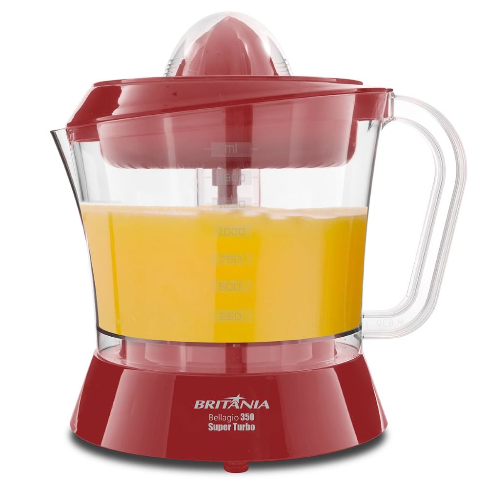 Espremedor de Frutas Bellagio 350 Super Turbo 35W Britânia Vermelho Com Jarra 1,5L 127V