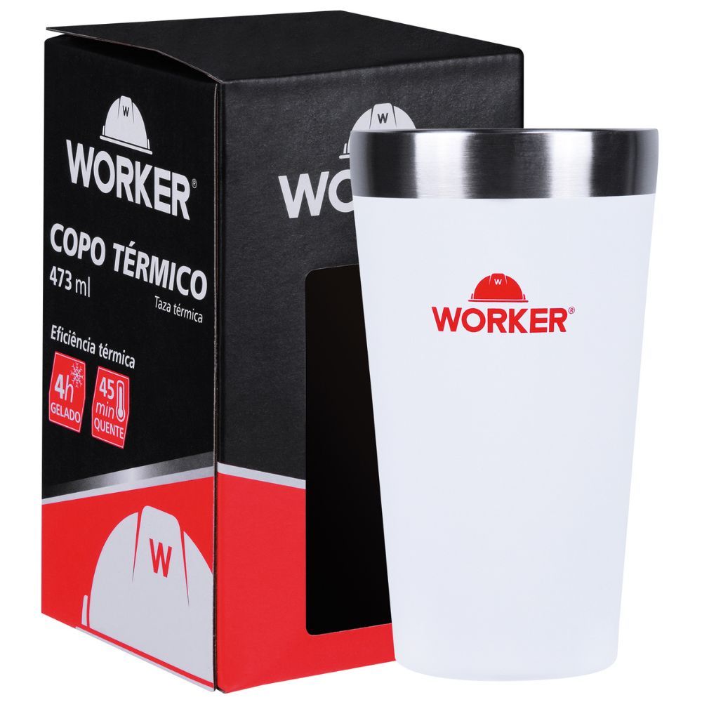 Copo Térmico 473ml Sem Tampa Branco/Vermelho Worker