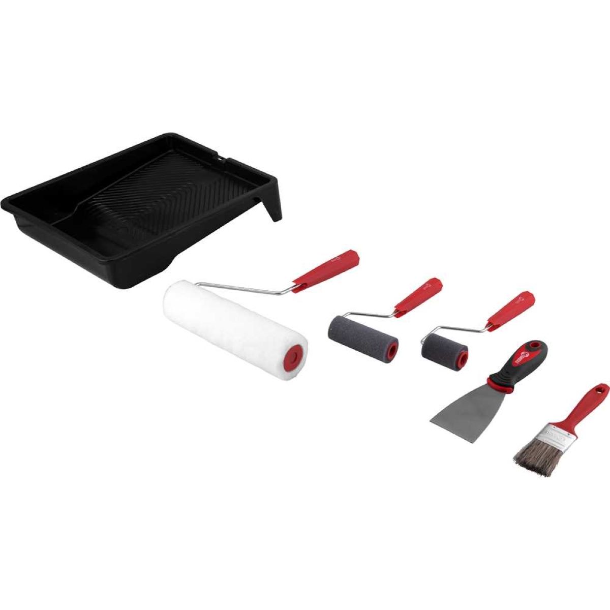 Código do Fornecedor: 6241007000Marca: Nove54Conteúdo da embalagem: 1 Conjunto Para Pintura e Decoração 7 Pecas Nove54Destaques e diferenciais: Evita respingos, proporcionando ótimo rendimento e acabamento.Aplicações e dicas de uso: Indicado para utilização em pinturas residenciais e pequenos reparos.Garantia legal: 90 diasDetalhes TécnicosQuantidade de peças do kit: 7 peças Largura do rolo para pintura: 23 cm (lã) / 5 cm e 9 cm (espuma) Composição (jogo): 1 bandeja de pintura 23 cm, 1 pincel 1.1/2", 1 espátula 6 cm, 1 rolo de espuma 5 cm, 1 rolo de espuma 9 cm, 1 suporte para rolo 23 cm e 1 rolo de lã 23 cm Cor da bandeja plástica para pintura: Preta Largura da bandeja plástica para pintura: 38 cm Material do rolo para pintura: Lã e Espuma Suporte do rolo para pintura: Com suportes Material das cerdas do pincel: Sintética Altura das cerdas do pincel: 44 mm Cor das cerdas do pincel: Gris Largura do pincel: 1.1/2" - 38 mm Cor do cabo do pincel: Vermelho Massa aproximada (peso) (kg): 0,6 kg