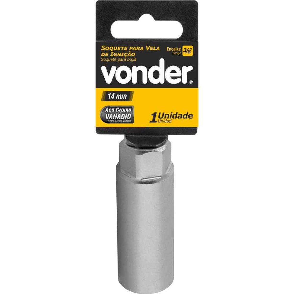 Código do Fornecedor: 3059014034Marca: VonderConteúdo da embalagem: 1 Soquete para vela.Destaques e diferenciais: Possui acabamento cromado e proteção interna de borracha para segurar a vela de ignição.Aplicações e dicas de uso: Indicado para remoção de velas de veículos leves e médios.Garantia legal: 3 mesesQualificação TécnicaMedida do encaixe (pol): 3/8" Medida: 14 mm Comprimento total: 63 mm Medida do sextavado externo: 16 mm Material : Aço cromo vanádio Acabamento: Cromado Massa aproximada (peso) (kg): 0,56 kg