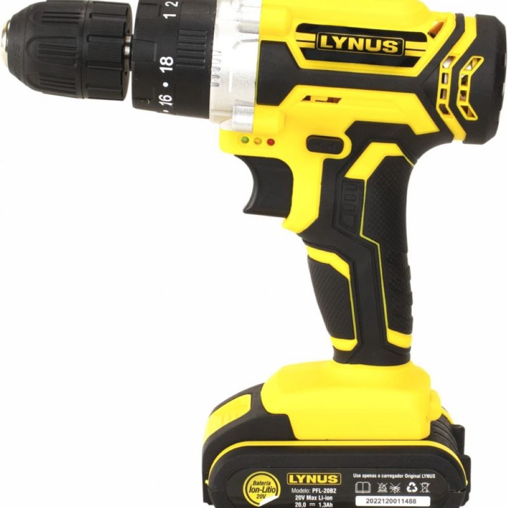 Código do Fornecedor: 00000382.0 Marca: Lynus Conteúdo da embalagem: 1 Parafusadeira Furadeira de Impacto 20V com 2 Baterias Carregador Bivolt e Maleta PFL-20B2 Lynus Parafusadeira Furadeira de Impacto 20V Lynux PFL-20B2: Eficiência e Conforto para suas Tarefas A Parafusadeira Furadeira de Impacto 20V Lynux PFL-20B2 é a ferramenta ideal para perfurar e fixar materiais resistentes com facilidade e eficiência. Seu design ergonômico e potência de 20V tornam-na uma escolha essencial para diversas aplicações de perfuração e fixação. Características: Com Impacto: Ideal para perfurações em materiais resistentes, como concreto e metal.Bateria de 20V: Oferece potência suficiente para realizar trabalhos exigentes sem a necessidade de fios.18 Posições para Torque + 1 para Furação: Permite ajustar o torque de acordo com a necessidade do trabalho.Carregador de Baterias Bivolt Automático: Facilita o carregamento da bateria em qualquer tomada.Velocidade Variável e Reversível: Proporciona controle total sobre o processo de perfuração e fixação.Capacidade de Perfuração: Até 10mm em metais e até 16mm em madeira.Função Impacto: Aumenta a eficiência de perfuração em materiais mais duros.Peso Líquido: Leve e fácil de manusear, pesando apenas 1,3kg. Especificações Técnicas: Tensão do Carregador de Bateria: 100-240V (Bivolt Automático)Tensão da Bateria: 20VccFrequência do Carregador: 50-60HzTipo de Bateria: Íons de LítioCapacidade da Bateria: 1,3AhTipo de Mandril: Aperto RápidoCapacidade do Mandril: 10mmRotação (sem Carga): 0-350/0-1350 rpmTorque Máximo: 29NmRegulagem de Torque: 18 posiçõesFunção de Impacto: Sim Conteúdo da Embalagem: Parafusadeira Furadeira de Impacto 20V2 Baterias 20VCarregadorMaleta9 Soquetes6 Brocas8 BitsCabo Extensor Flexível A Parafusadeira Furadeira de Impacto 20V Lynux PFL-20B2 é a solução completa para suas necessidades de perfuração e fixação, oferecendo versatilidade, potência e conveniência em um único pacote. Garantia: 6 meses