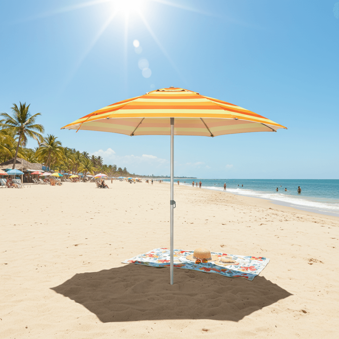 Guarda Sol 2,40m: Proteção e Conforto com Design Degradê O Guarda-Sol Bel Milagres de 2,40 metros combina proteção solar de alta performance com um design vibrante em Laranja e Amarelo Degradê, ideal para seus momentos de lazer. Seja na praia, piscina, camping ou no seu jardim, este guarda-sol oferece o conforto e a segurança que você precisa para aproveitar o sol sem preocupações. Sua cobertura em poliéster com revestimento Silver Coating reflete os raios solares, proporcionando um ambiente mais fresco e agradável, com FPS 100 para proteção eficaz contra os raios UV. A estrutura em alumínio de 32mm garante leveza e resistência à corrosão, perfeita para áreas litorâneas, enquanto as varetas em fibra de vidro de 11mm oferecem suporte e durabilidade, mesmo em condições de vento moderado. O sistema de ventilação integrado melhora a circulação do ar, evitando o superaquecimento sob a cobertura. Acompanha uma prática sacola tiracolo para facilitar o transporte e armazenamento, tornando-o o companheiro ideal para suas aventuras ao ar livre. Especificações FPS: 100 Sacola para transporte: Sim Cobertura: Poliéster com revestimento Silver Coating Haste: Alumínio Ø 32 mm Armação: Alumínio Varetas: 6 unidades em fibra de vidro de 11 mm Cor: Laranja e Amarelo Degradê Modelo: Milagres Dimensões montado (C x L x A): 2,40 m x 2,22 m Itens Inclusos 01 Guarda-Sol Bel Milagres 2,40 m Laranja e Amarelo Degradê em Alumínio com Varetas de Fibra de Vidro 01 Sacola tiracolo para transporte Perguntas Frequentes (FAQ) Pergunta: Qual o nível de proteção solar deste guarda-sol?Resposta: Este guarda-sol oferece proteção solar FPS 100, bloqueando a grande maioria dos raios UV prejudiciais. Pergunta: O guarda-sol é resistente à corrosão?Resposta: Sim, a haste em alumínio de 32mm é resistente à corrosão, tornando-o ideal para uso em áreas litorâneas. Pergunta: Qual a garantia do produto?Resposta: O produto possui garantia legal de 90 dias contra defeitos de fabricação.