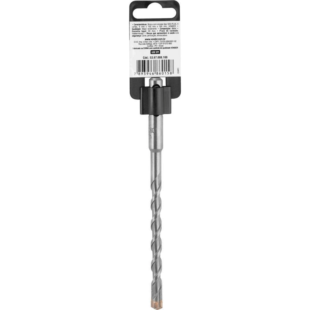Broca SDS Plus 4 Cortes 8,0 x 100 x 160 VonderIdeal para profissionais da construção civil, instaladores e marceneiros exigentes, essa broca foi desenvolvida para entregar eficiência superior em cada furo — com estabilidade, menos esforço e máxima vida útil.Projetada com ponta em metal duro (vídea) de altíssima qualidade, a broca oferece excelente resistência ao desgaste, mesmo em condições de uso intensas. Seus 4 cortes ativos garantem perfurações mais limpas e rápidas, com menor risco de travamento ou quebra. Esse diferencial técnico proporciona não apenas mais produtividade no canteiro de obras, mas também segurança e confiança ao operador.O canal helicoidal duplo otimiza a remoção dos resíduos durante a perfuração, reduzindo o atrito e melhorando a fluidez do trabalho — uma característica essencial ao lidar com materiais como concreto, alvenaria, pedra e similares. O resultado? Perfurações consistentes, com excelente acabamento e menor desgaste da ferramenta.O encaixe SDS Plus oferece total compatibilidade com marteletes rotativos que utilizam esse sistema, proporcionando encaixe rápido, firme e seguro. A troca de brocas se torna mais prática e sem necessidade de ferramentas adicionais, o que acelera o ritmo da obra e reduz paradas.Com diâmetro de 8 mm, comprimento útil de 100 mm e comprimento total de 160 mm, essa broca oferece uma excelente relação entre profundidade e controle, atendendo com precisão às necessidades de instalações elétricas, hidráulicas, fixações e muito mais.Mais do que um simples acessório, a Broca SDS Plus Vonder 8 mm com 4 cortes é uma verdadeira parceira de quem busca alto rendimento e acabamento profissional em qualquer obra ou reforma.Especificações- Qualificação Técnica- Diâmetro (mm/pol): 8 mm- Comprimento útil: 100 mm- Comprimento total: 160 mm- Tipo de haste: Encaixe tipo SDS PLUS- N° de cortes: 4- Tipo de canal: Helicoidal- Nº de canais: 2Itens inclusos- 1 Broca SDS Plus 4 Cortes 8,0 x 100 x 160 Vonder}Garantia- 03 meses com o fabricante