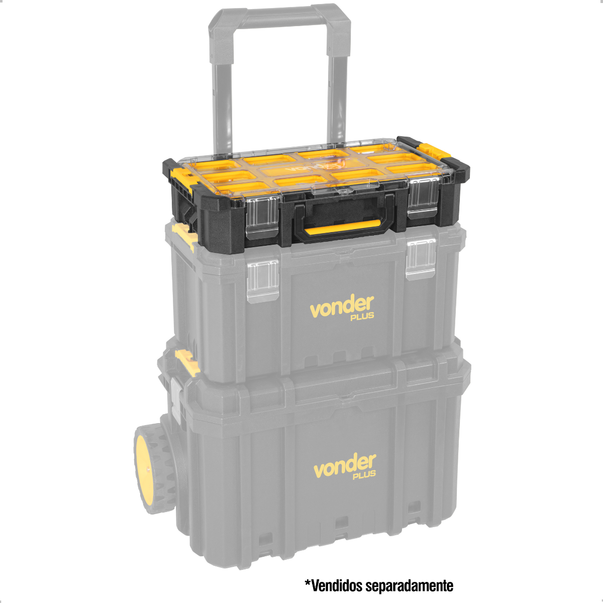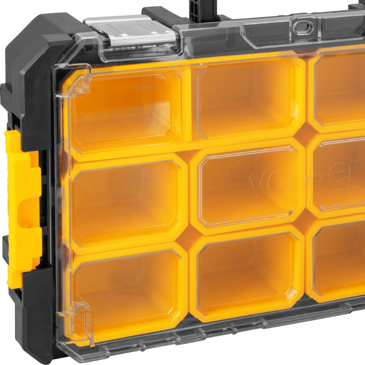 #html-body [data-pb-style=A0KG3NP]{justify-content:flex-start;display:flex;flex-direction:column;background-position:left top;background-size:cover;background-repeat:no-repeat;background-attachment:scroll}Organizador Plástico Vonder Plus OP V700 - Vonder OficialSe você precisa manter suas peças, acessórios ou componentes sempre à mão, com visibilidade e organização impecável, o Organizador Plástico Vonder Plus OPV700 é a solução perfeita. Robusto, modular e extremamente funcional, ele foi desenvolvido para facilitar a rotina de quem valoriza produtividade e ordem no ambiente de trabalho — seja em oficinas, indústrias, construção civil, instalações elétricas ou até mesmo no uso doméstico.Com dimensões ideais (510 mm x 285 mm x 110 mm) e estrutura em polipropileno de alta resistência, o OPV700 alia leveza à durabilidade. Suporta até 15 kgf de carga, garantindo segurança mesmo quando totalmente carregado. Sua tampa transparente facilita a visualização dos conteúdos sem a necessidade de abrir o organizador, economizando tempo em tarefas do dia a dia.Este modelo conta com 12 compartimentos internos removíveis, sendo que 2 deles possuem divisórias internas também removíveis, permitindo personalizar o espaço conforme os tipos de itens armazenados. Isso oferece mais liberdade para acomodar desde pequenos parafusos até peças maiores com total segurança.Pensando em mobilidade e integração, o OPV700 pode ser acoplado diretamente à Caixa de Ferramentas CPV 700 ou à Caixa com Rodas CRV 700 (vendidas separadamente), criando um sistema de organização portátil e empilhável, ideal para quem está sempre em movimento ou precisa transportar ferramentas com frequência.Especificações- Material (tipo/composição): Polipropileno- Comprimento (mm): 510 mm- Largura: 285 mm- Altura: 110 mm- Capacidade de carga (kgf): 15 kgf- Cor do organizador para ferramentas: Preto, amarelo e transparente- Massa aproximada (peso) (kg): 2,4 kg- Massa aproximada (peso) (kg): 2,4 kg- Permite ser acoplado com: Caixa Plástica para Ferramentas CPV 700 (61.05.000.700) e Caixa Plástica para Ferramentas, com Rodas CRV 700 (61.05.007.000) (não acompanham)- Compartimentos: 12 compartimentos removíveis, sendo 2 destes com divisória interna também removívelItens inclusos- 1 Organizador Plástico OPV700 Vonder PlusGarantia- 03 meses com o fabricante