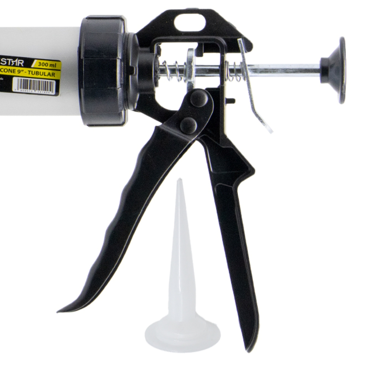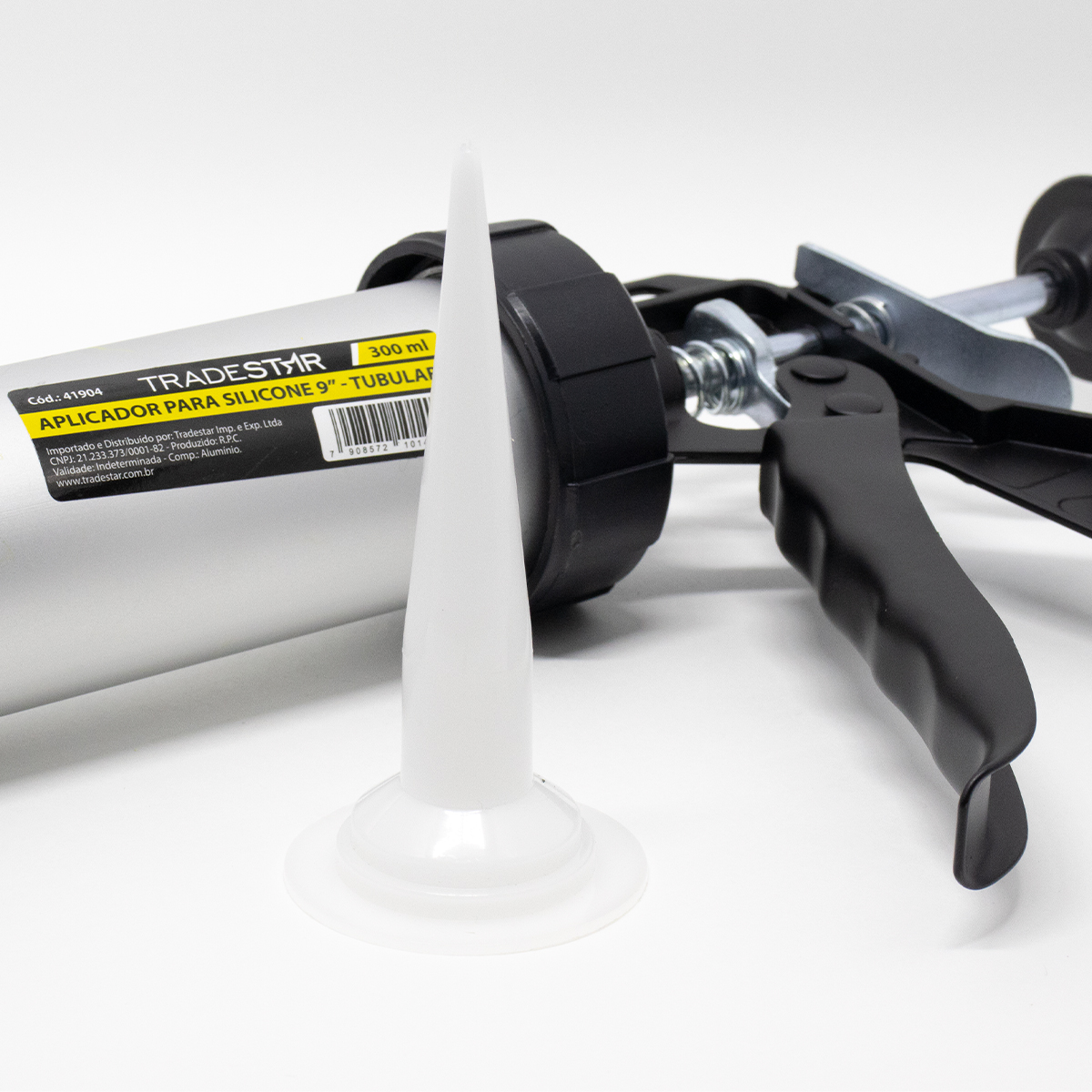 Aplicador de Silicone Tradestar 9" Alumínio Tubular 300 mlO Aplicador de Silicone Tradestar 9" é a escolha ideal para quem busca eficiência, precisão e praticidade na aplicação de silicones e outros tipos de selantes. Fabricado em alumínio tubular de alta qualidade, combina resistência e leveza, garantindo maior durabilidade mesmo em uso frequente e em condições exigentes.Com capacidade para saches de 300 ml, o aplicador foi projetado para proporcionar uma aplicação uniforme e controlada, evitando desperdícios e assegurando um acabamento profissional em cada trabalho. Sua estrutura robusta em alumínio garante maior firmeza, enquanto o design ergonômico favorece o manuseio, reduzindo o esforço do usuário durante aplicações prolongadas.Seja em obras, reformas, instalações ou pequenos reparos, o Aplicador Tradestar é indispensável para profissionais da construção civil, montadores, instaladores e até mesmo para uso doméstico. Ideal para aplicação de silicone, PU, acrílico e outros selantes, ele é a ferramenta certa para garantir vedação, fixação e acabamento de alta qualidade.Especificações- Modelo: Aplicador Tubular 9"- Material: Alumínio- Capacidade: 300 ml (saches)- Indicação de uso: Aplicação de silicones e outros selantesItens inclusos- 1 Aplicador de Silicone 9" Alumínio TubularGarantia- 03 meses com o Fabricante