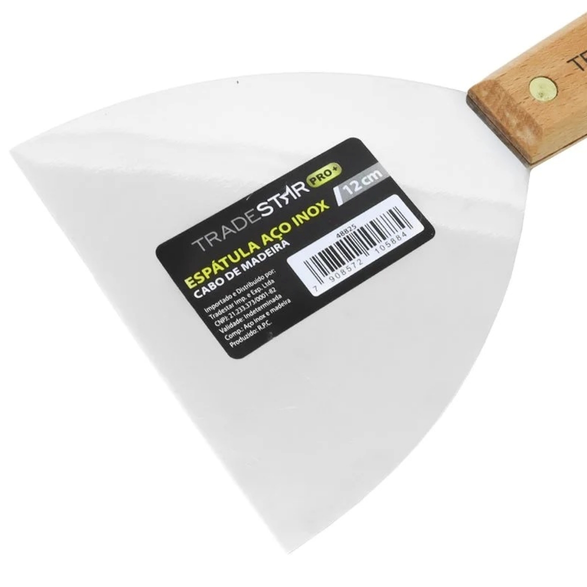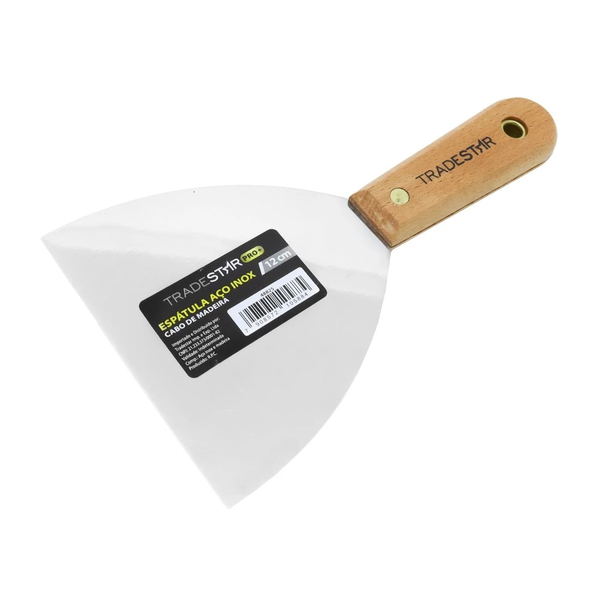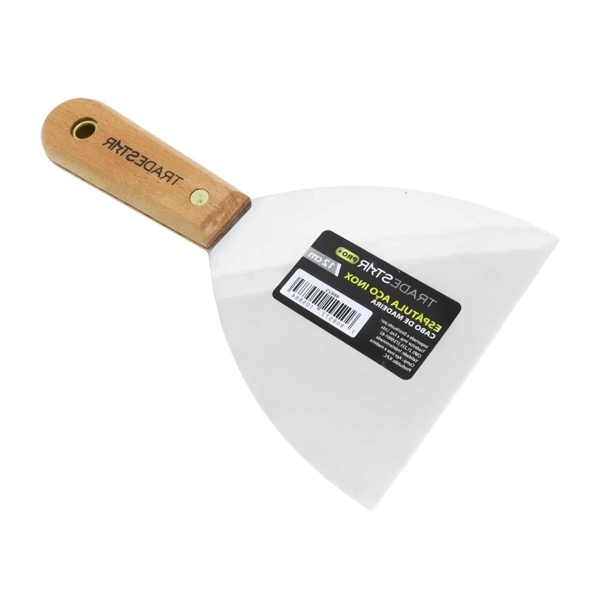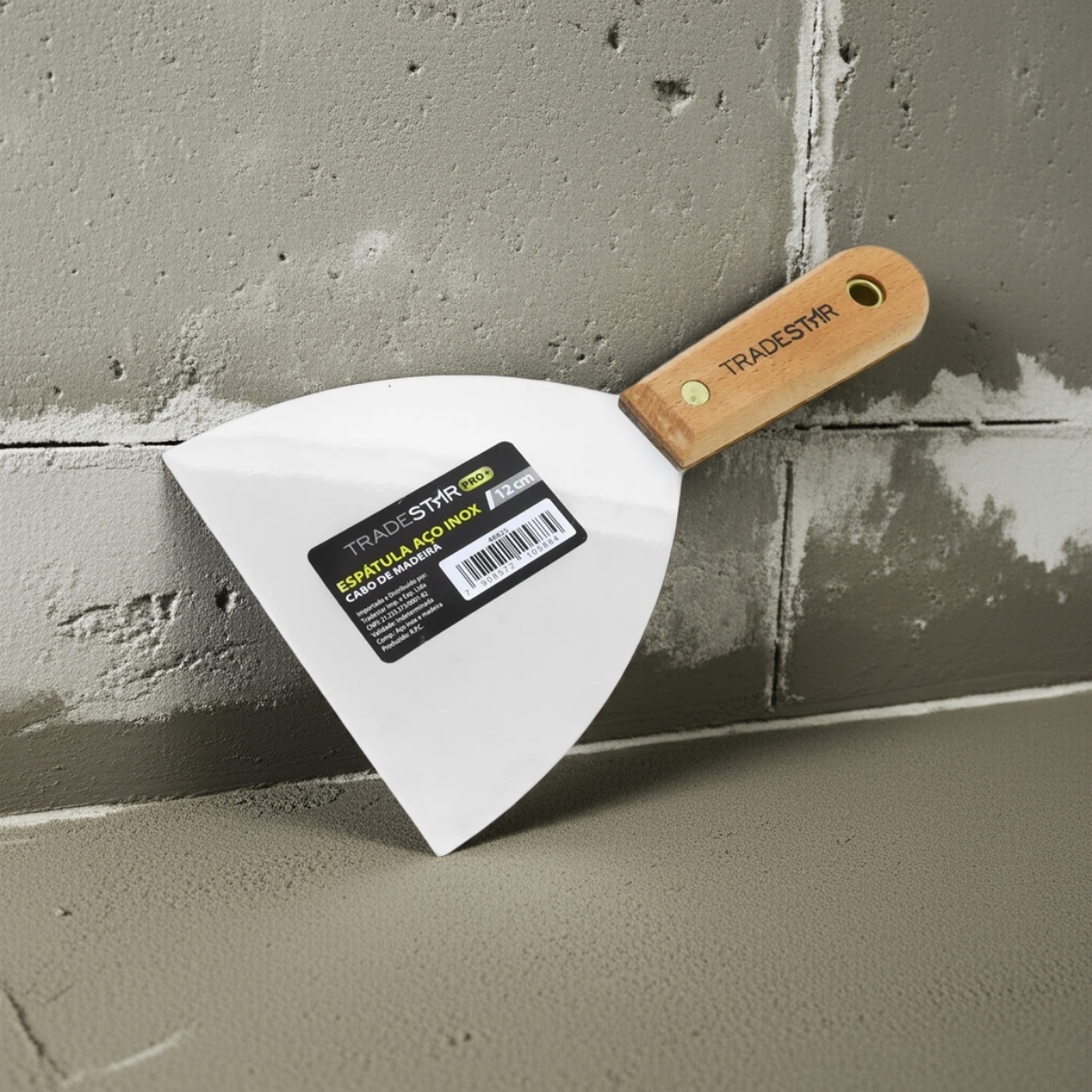 Espátula 12 cm Tradestar Aço Inox Multiuso Chapa Pintor Gesso DrywalA Espátula Tradestar 12 cm em Aço Inox com Cabo de Madeira é a escolha ideal para quem busca precisão, durabilidade e conforto em uma única ferramenta. Desenvolvida para profissionais de pintura, drywall e acabamento, esta espátula alia a resistência do aço inoxidável com a ergonomia do cabo em madeira natural, garantindo excelente desempenho em tarefas detalhadas e de alto padrão.Com lâmina de 12 cm de largura, é perfeita para trabalhos de acabamento minucioso, aplicação de massas em áreas pequenas e de difícil acesso, além de reparos e correções em superfícies diversas. Seu design compacto e robusto proporciona maior controle e precisão, tornando-a indispensável tanto para uso profissional quanto doméstico.Especificações- Largura da lâmina: 12 cm- Material da lâmina: Aço inoxidável (resistente à corrosão)- Cabo: Madeira ergonômica de alta durabilidade- Aplicações: Pintura, gesso, massa corrida, drywall, artesanato e reparos em geralItens inclusos- 1 Espátula 12 cm Inox Cabo MadeiraGarantia- 03 meses com o Fabricante