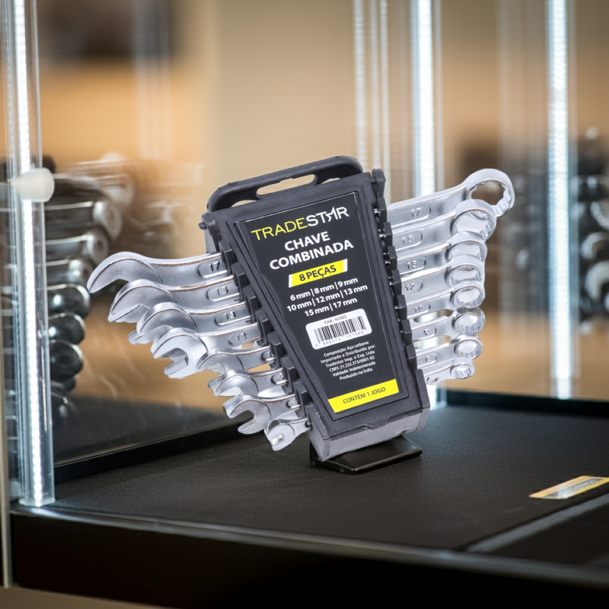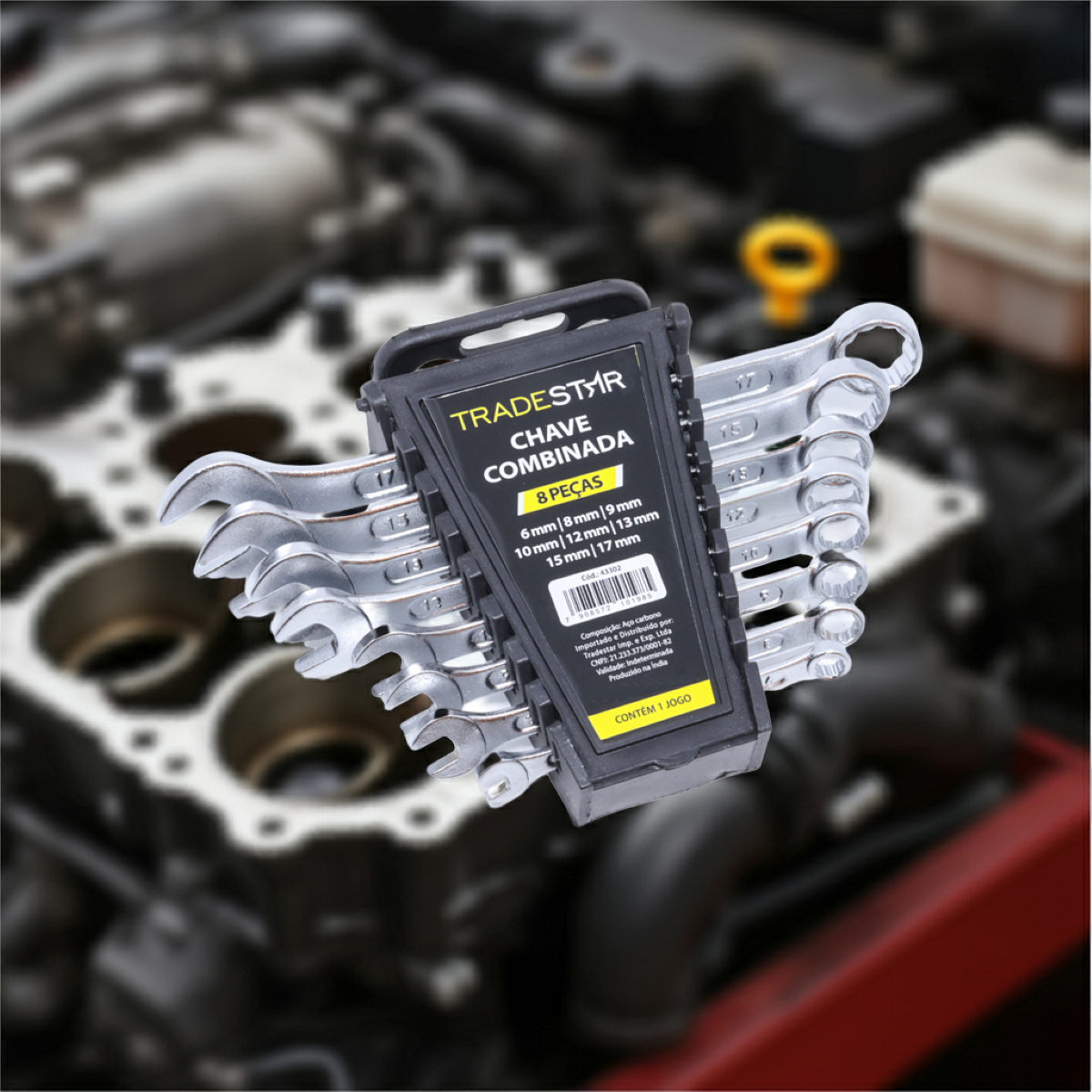 Jogo Chave Combinada Tradestar 8 Peças 6 A 17 mm ProfissionalO Jogo de Chaves Combinadas Tradestar 8 Peças é a escolha certa para quem busca qualidade, resistência e praticidade em uma ferramenta essencial. Desenvolvido com atenção aos detalhes, este conjunto garante eficiência em diferentes tipos de trabalhos, atendendo tanto profissionais da mecânica, manutenção e construção civil, quanto usuários domésticos que valorizam ferramentas duráveis e confiáveis.Composto por 8 tamanhos fundamentais – 6 mm, 8 mm, 9 mm, 10 mm, 12 mm, 13 mm, 15 mm e 17 mm – o kit cobre as medidas mais comuns utilizadas em serviços diários. Essa variedade proporciona versatilidade, permitindo que você esteja sempre preparado para apertar ou soltar porcas e parafusos de diferentes dimensões com total segurança.As chaves combinadas se destacam por seu design 2 em 1, unindo em uma única peça a chave de boca e a chave estrela. O lado aberto oferece agilidade em ajustes rápidos, enquanto o lado fechado garante firmeza e maior torque, evitando danos aos parafusos e garantindo encaixe preciso. Isso torna o jogo extremamente funcional, reduzindo a necessidade de múltiplas ferramentas e otimizando o trabalho.Fabricadas em aço carbono de alta resistência, as chaves Tradestar foram projetadas para suportar uso intenso e resistir ao desgaste, assegurando uma longa vida útil. O acabamento especial ajuda a proteger contra corrosão, além de proporcionar um visual limpo e profissional.Outro destaque é o formato ergonômico, que facilita o manuseio e proporciona conforto mesmo em tarefas prolongadas, reduzindo a fadiga do usuário. Além disso, o conjunto acompanha um estojo prático e resistente, que mantém todas as peças organizadas e sempre ao alcance, evitando perdas e tornando o transporte muito mais simples.Especificações- Material: Aço Carbono de alta resistência- Acabamento: Tratamento especial contra oxidação- Medidas: 6 mm / 8 mm / 9 mm / 10 mm / 12 mm / 13 mm / 15 mm / 17 mm- Design: Ergonômico, maior conforto e praticidade no uso- Indicação: Aperto e soltura de porcas e parafusos sextavadosItens inclusos- 1 Jogo Chave Combinada 6-17 mm 8 Peças Aço CarbonoGarantia- 03 meses com o Fabricante