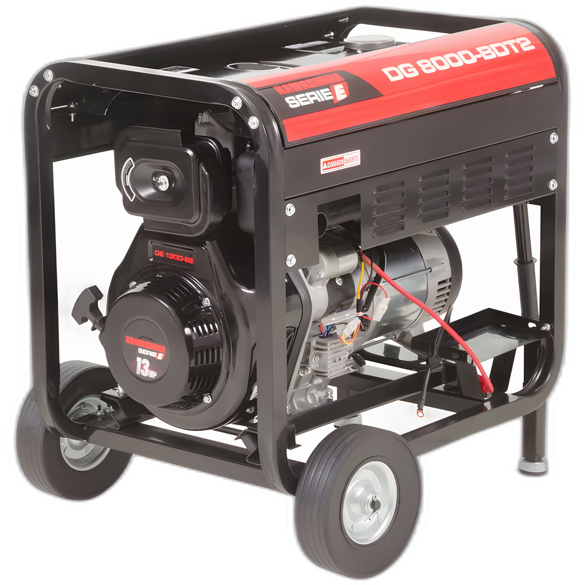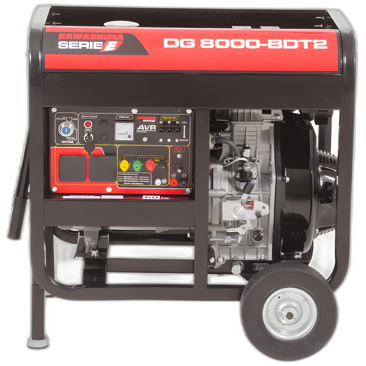 Gerador Diesel Kawashima DG8000-BDT2: Energia Trifásica 5700W Confiável e Potente para Suas DemandasGaranta a continuidade das suas operações com o Gerador Diesel Kawashima DG8000-BDT2, a solução definitiva para potência trifásica robusta. Ideal para obras, comércios, eventos e como backup de emergência, este gerador entrega uma potência nominal de 5700W (7,2 kVA) e máxima de 6200W (8,0 kVA), disponível nas tensões 220V e 110V. Sua tecnologia avançada, com regulador de tensão AVR Digital, assegura uma energia estável e segura, protegendo equipamentos sensíveis contra flutuações. Equipado com o motor Kawashima Serie E DE 1300-BE de 456 cc, monocilíndrico e refrigerado a ar, oferece durabilidade e eficiência com baixo consumo de combustível de 370 g/kWh. A partida elétrica (12V) e manual proporciona máxima conveniência. O DG8000-BDT2 também está preparado para ATS (Painel Automático de Transferência), permitindo uma transição suave e automática para a energia do gerador em caso de falha da rede elétrica. Com tanque de 12,5 L, oferece excelente autonomia para quem não pode parar e busca um parceiro de energia confiável para todos os desafios.Especificações Modelo: DG 8000-BDS/BDT Tipo: Gerador diesel, trifásico Potência nominal: 5700 W / 7,2 kVA Potência máxima: 6200 W / 8,0 kVA Tensão: 220 V / 110 V Trifásico Frequência: 60 Hz Regulador de tensão (AVR): AVR Digital Sistema de partida: Elétrico (12V - 30A) e manual Tipo do motor: Monocilíndrico, horizontal, diesel, 4T, refrigerado a ar Motor: Kawashima Serie E DE 1300-BE Cilindradas: 456 cc Consumo de combustível: 370 g/kWh Capacidade do tanque de combustível: 12,5 L Carregador de bateria: 12V 8.3A Nível de ruído: 105 dB(A) Preparado para ATS: Sim Voltímetro: Sim Peso líquido: 116 kg Peso bruto: 119 kg Dimensões do equipamento: 720 x 480 x 585 mm Dimensões da embalagem: 760 x 520 x 710 mmItens Inclusos 1 Gerador à Diesel Kawashima DG8000-BDT2Perguntas Frequentes (FAQ) Pergunta: Qual a potência deste gerador?Resposta: A potência nominal é de 5700W (7,2 kVA) e a potência máxima é de 6200W (8,0 kVA). Pergunta: Este gerador é compatível com painel ATS?Resposta: Sim, o Gerador Kawashima DG8000-BDT2 já vem preparado para a instalação de um Painel Automático de Transferência (ATS). Pergunta: O produto acompanha bateria para a partida elétrica?Resposta: Não, o equipamento não acompanha a bateria. Ela deve ser adquirida separadamente. Pergunta: Quais são as voltagens de saída disponíveis?Resposta: O gerador oferece saídas trifásicas nas tensões 220V e 110V.