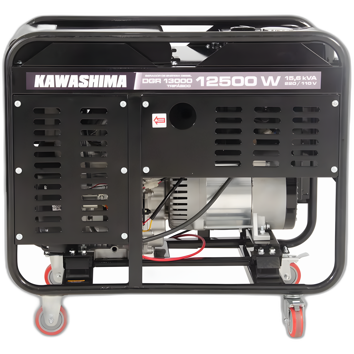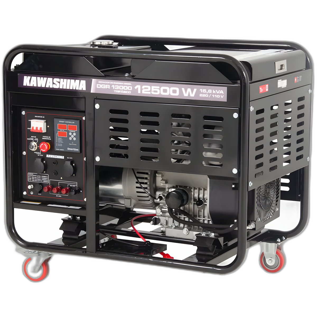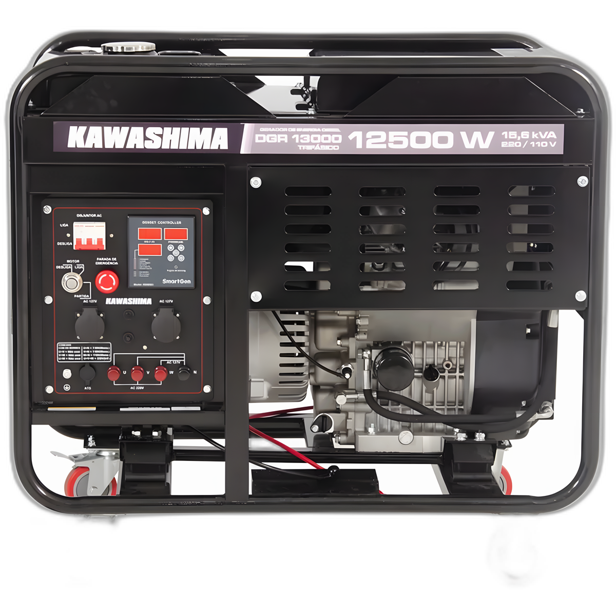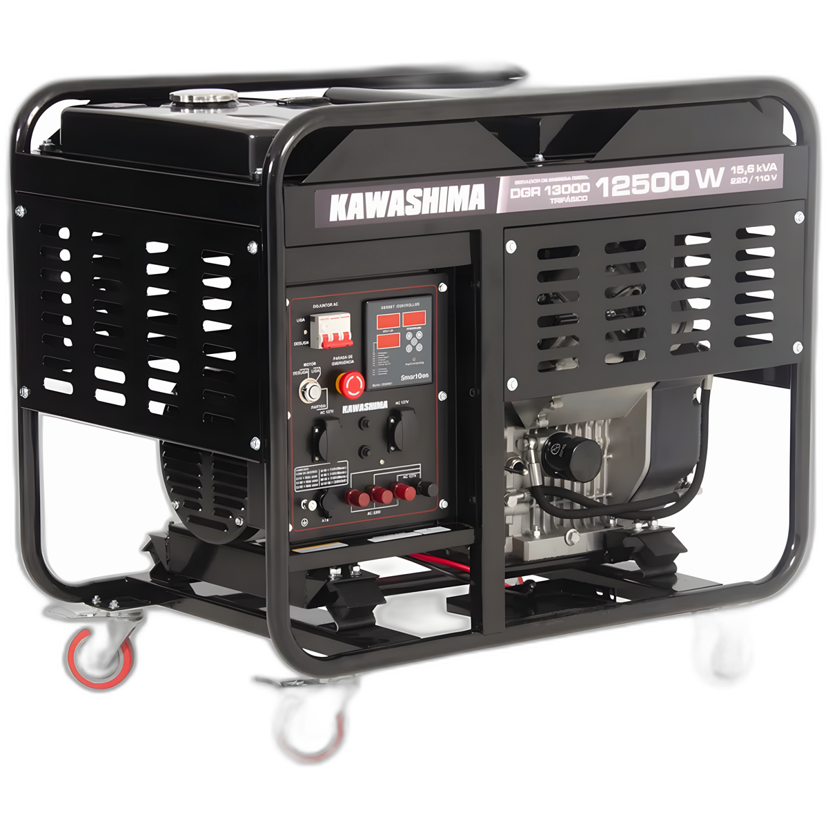 Gerador Diesel Kawashima DGR 13000-T2 Trifásico: Energia Confiável e Estável para Todas as AplicaçõesProcurando uma solução de energia robusta, confiável e de alta qualidade para suas necessidades mais exigentes? Apresentamos o Gerador à Diesel Kawashima DGR 13000-T2, um equipamento projetado para entregar performance superior. Com uma potência máxima de 12,5 kW (15,6 kVA) e nominal de 11,5 kW (14,3 kVA), este gerador trifásico 220V/110V é a escolha ideal para uma vasta gama de aplicações, desde recarga de bateria de drones e equipamentos sensíveis até o suporte de energia para indústrias, comércios e eventos. Equipado com um Regulador de Tensão (AVR) Digital avançado, ele garante uma energia limpa, com um baixíssimo THD (Distorção Harmônica Total) de apenas 5%, protegendo seus aparelhos eletrônicos contra flutuações. Seu motor Kawashima DER 232 a diesel, de dois cilindros (V-Twin) e refrigeração a ar, oferece durabilidade e eficiência, com um consumo otimizado de 280 g/kWh. A partida elétrica facilita o uso, enquanto o painel de controle multifuncional proporciona uma operação intuitiva. Com um tanque de combustível de 30 litros, você tem autonomia prolongada para jornadas de trabalho ou eventos. Além disso, ele já vem preparado para uso com ATS (Transferência Automática de Carga), assegurando uma transição suave em caso de falta de energia da rede. Invista na segurança e estabilidade que só o Gerador Kawashima DGR 13000-T2 pode oferecer.Especificações Modelo: DGR 13000-T2 Motor: Kawashima DER 232, Dois cilindros (V-Twin), refrig. a ar, diesel Cilindradas: 997 cc Potência máxima do motor: 23 HP Potência máxima: 12500 W / 15,6 kVA Potência nominal: 11500 W / 14,3 kVA Tensão: Trifásico 220 V / 110 V Frequência: 60 Hz Regulador de tensão (AVR): Sim (AVR Digital) THD (Distorção Harmônica Total): 5% Sistema de partida: Elétrico Carregador de bateria: Sim (Tensão nominal DC: 12 V - 8,3 A) Capacidade do tanque de combustível: 30 L Capacidade do cárter: 2,5 L Óleo lubrificação: SAE 20W-40 Consumo de combustível: 280 g/kWh Nível de ruído [dB(A)@7m]: 87 dB Voltímetro: Sim Dimensões (L x C x A): 1000 x 660 x 780 mm Peso líquido: 150 kg Peso bruto: 160 kgItens Inclusos Gerador à Diesel Kawashima DGR 13000-T2 Manual de instruçõesPerguntas Frequentes (FAQ) Pergunta: Qual a principal aplicação deste gerador?Resposta: Ele é ideal para recarga de bateria de drones e diversas outras aplicações que exigem uma fonte de energia trifásica estável e de alta qualidade, como uso industrial, comercial e em eventos. Pergunta: Este gerador possui alguma tecnologia para estabilizar a tensão?Resposta: Sim, o Gerador Kawashima DGR 13000-T2 é equipado com Regulador de Tensão (AVR) Digital, garantindo uma energia mais limpa e segura para seus equipamentos, com um baixíssimo THD (5%). Pergunta: Qual é a potência máxima e a capacidade do tanque de combustível?Resposta: A potência máxima é de 12500 W (15,6 kVA) e a potência nominal é de 11500 W (14,3 kVA). O tanque de combustível tem capacidade para 30 litros, oferecendo uma excelente autonomia de uso.