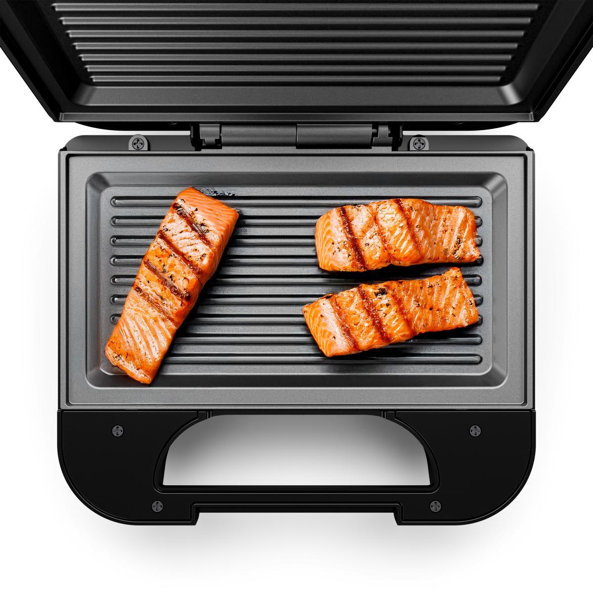 Sanduicheira e Grill Philco PGR27A Inox: 2 em 1 para Refeições Práticas e Saborosas Crie refeições deliciosas e rápidas com a Sanduicheira e Grill Philco PGR27A! Ideal para quem busca praticidade na cozinha, este eletrodoméstico 2 em 1 permite preparar sanduíches quentes, grelhados suculentos e vegetais crocantes com facilidade. O revestimento antiaderente Dura Mais evita que os alimentos grudem, simplificando a limpeza e garantindo que seus preparos fiquem perfeitos. O design em inox confere um toque moderno e elegante à sua cozinha, além de proporcionar maior durabilidade. Com potência de 750W e duas resistências, o cozimento é rápido e uniforme, enquanto a trava de fechamento e os pés antiderrapantes garantem segurança durante o uso. A luz indicadora de funcionamento informa quando o aparelho está pronto, facilitando o seu dia a dia. Transforme suas refeições em momentos especiais com a Sanduicheira e Grill Philco PGR27A, a combinação perfeita de sabor, praticidade e design. Especificações Revestimento: Antiaderente Dura Mais Potência: 750W Dimensões da chapa: 238 x 130mm Tipo de chapa: GRILL (ondulada) Trava de fechamento: Sim Base: Antiderrapante Luz indicadora: Funcionamento e Aquecimento Acabamento: Inox Itens Inclusos Sanduicheira e Grill Philco PGR27A Suporte para armazenar o cordão Perguntas Frequentes (FAQ) Pergunta: A sanduicheira funciona em 220V?Resposta: Não, esta sanduicheira é compatível apenas com voltagem de 127V. Pergunta: É fácil limpar?Resposta: Sim, o revestimento antiaderente Dura Mais facilita a limpeza, evitando que os alimentos grudem. Pergunta: Qual o tamanho das chapas?Resposta: As chapas possuem 238 x 130mm. Pergunta: A luz indicadora apaga quando a chapa atinge a temperatura ideal?Resposta: A luz indicadora permanece acesa enquanto o aparelho está ligado e aquece, indicando que está pronto para uso. Pergunta: Qual a garantia do produto?Resposta: O produto possui garantia de 360 dias.
