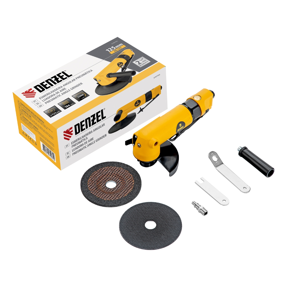 Esmerilhadeira Pneumática 11000 RPM 125mm 186 L/min Alta Performance Denzel AG125