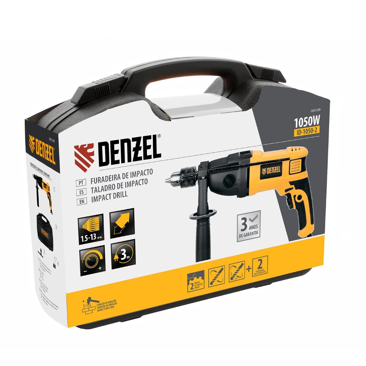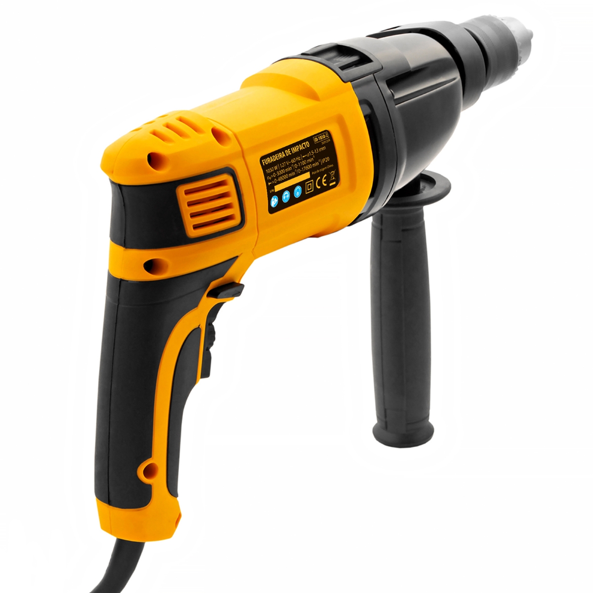 Furadeira de Impacto 1050W 0-3000/1100 RPM 0-48000/17600 BPM 127V Denzel ID-1050-2