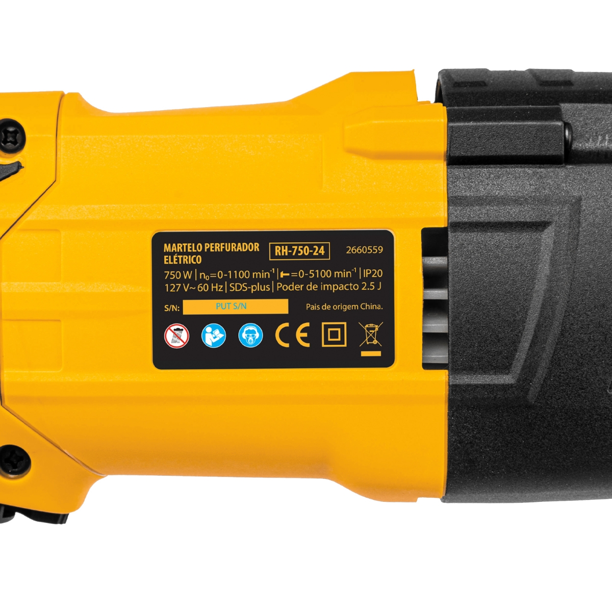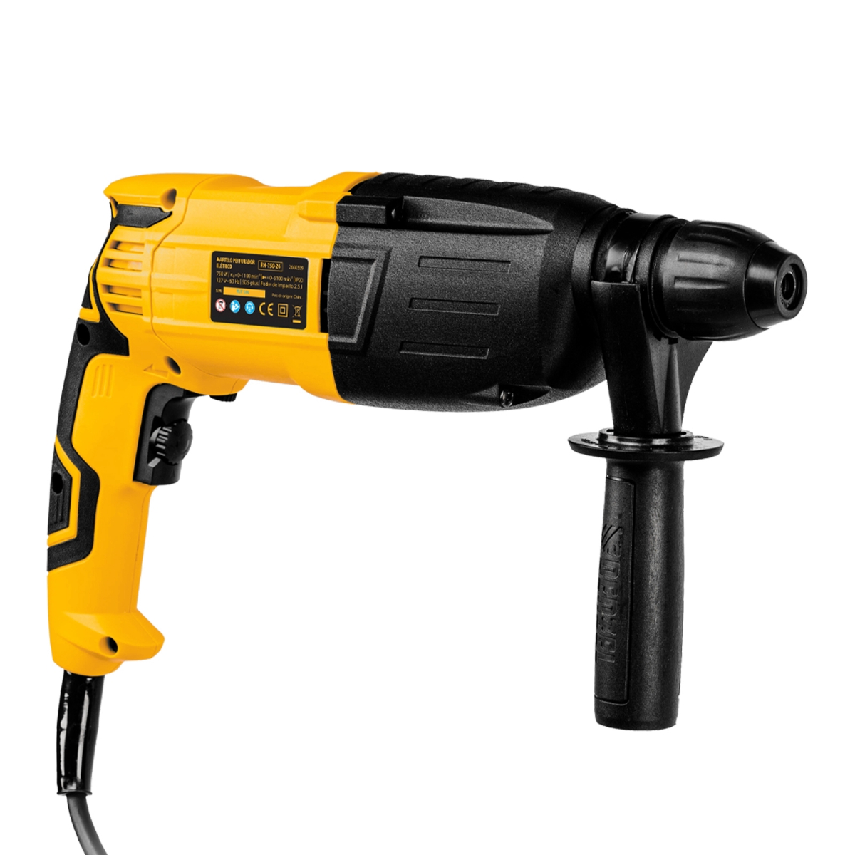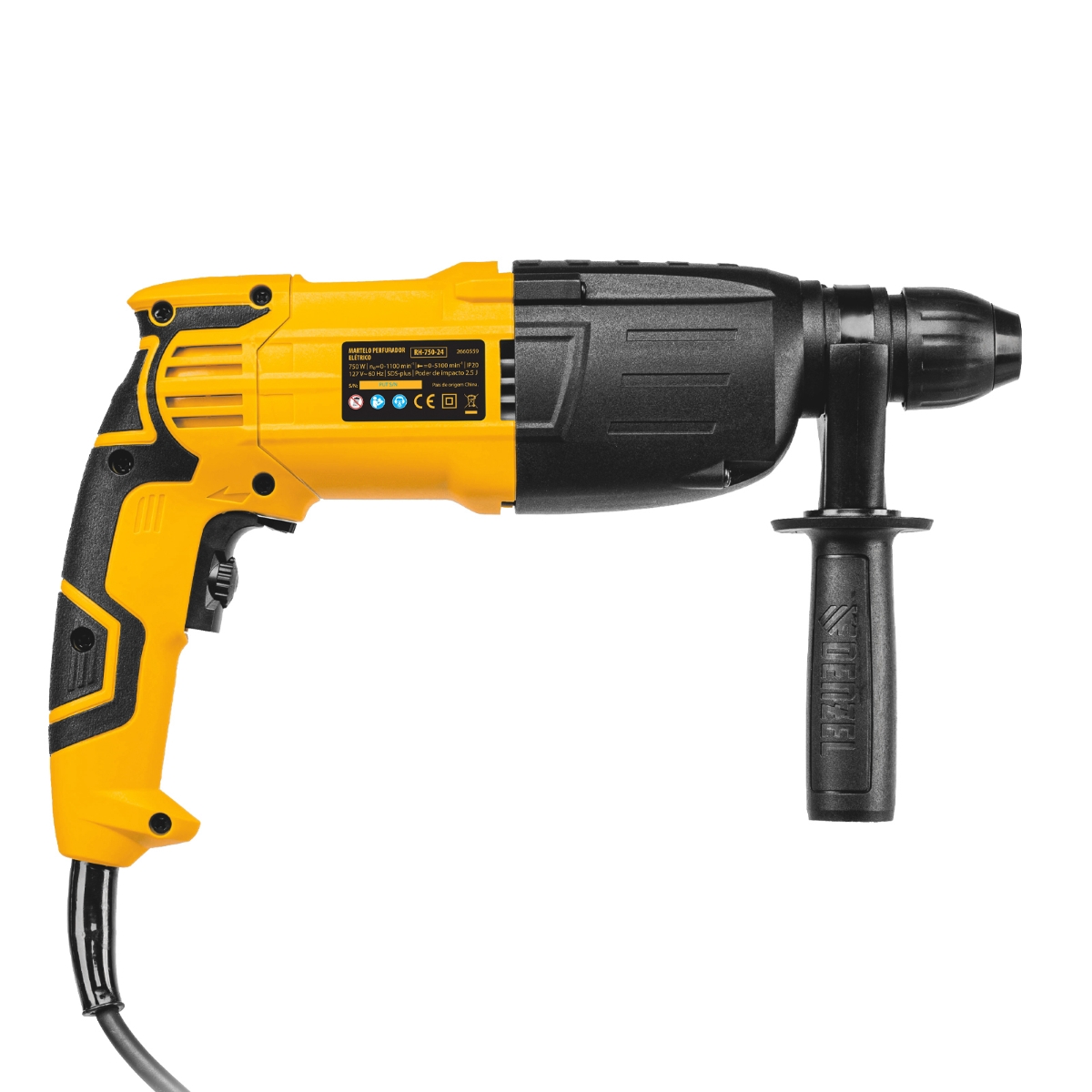 Martelete Perfurador e Rompedor Denzel RH-750-24 SDS-Plus 750W 2.5J 3 Modos 127V Para Concreto e Alvenaria