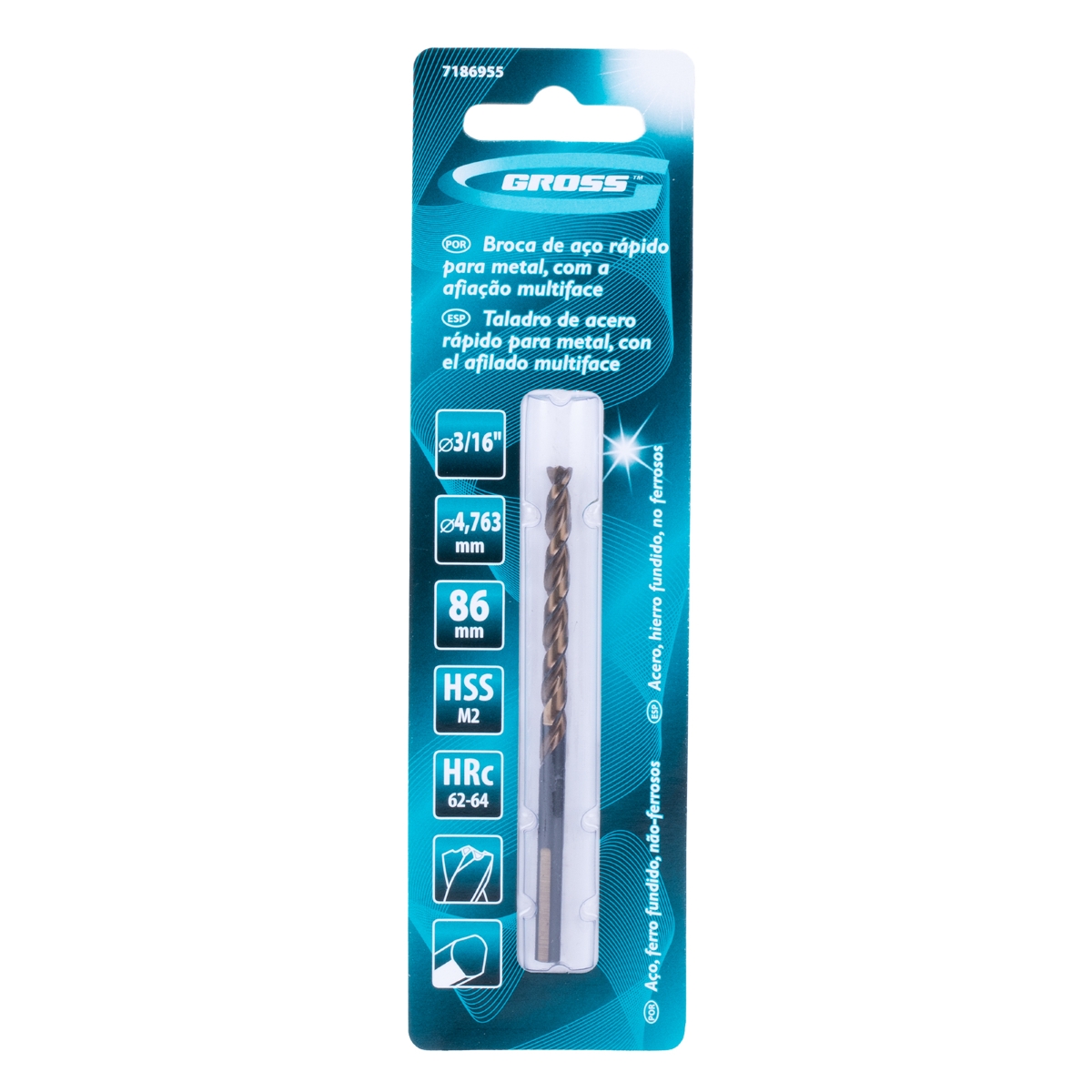 Broca Aço Rápido Profissional Industrial 3/16'' x 86mm Aço M2 1PC Gross 7186955