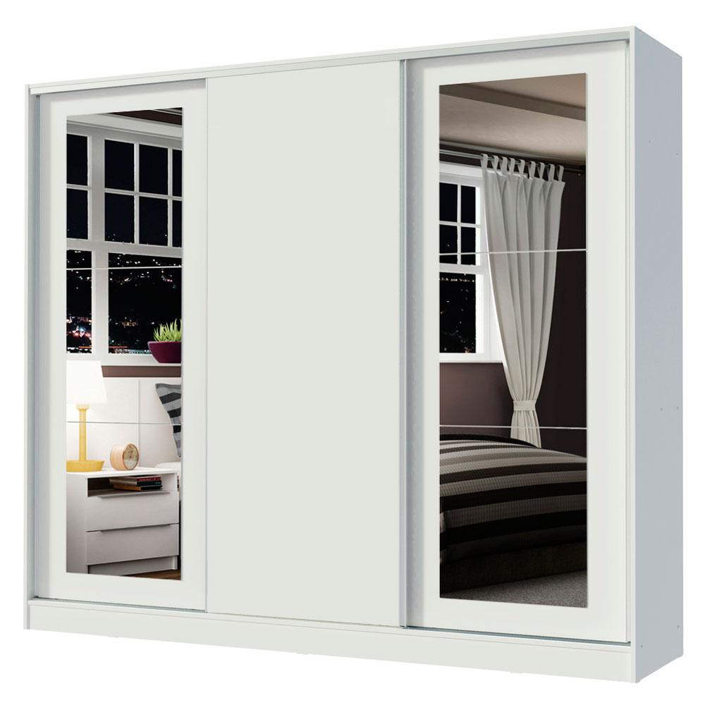 Guarda-Roupa Casal 100% MDF Madesa Eros 3 Portas de Correr com Espelhos - Branco