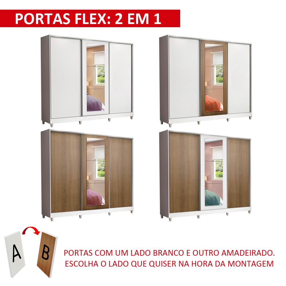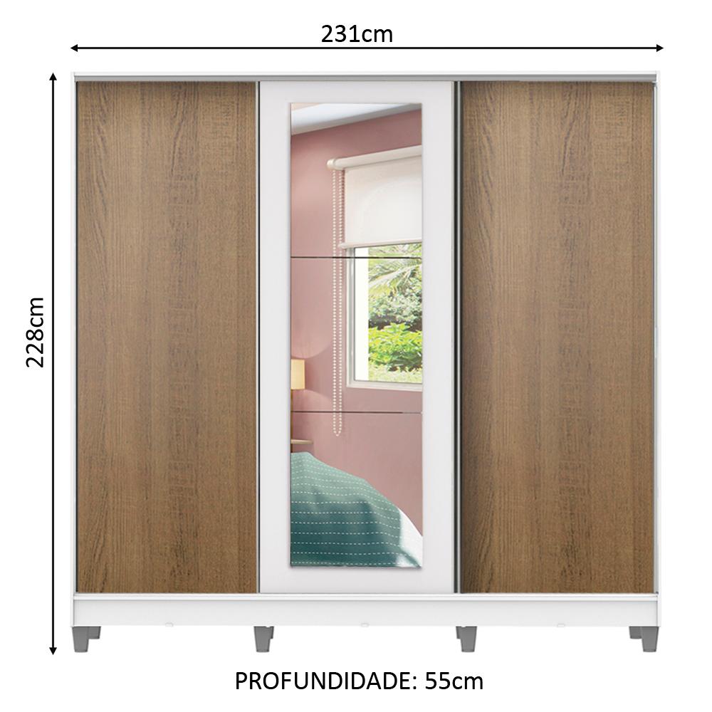 Guarda Roupa Casal 100% MDF Madesa Eros 3 Portas de Correr com Espelho com Pés - Branco/Rustic