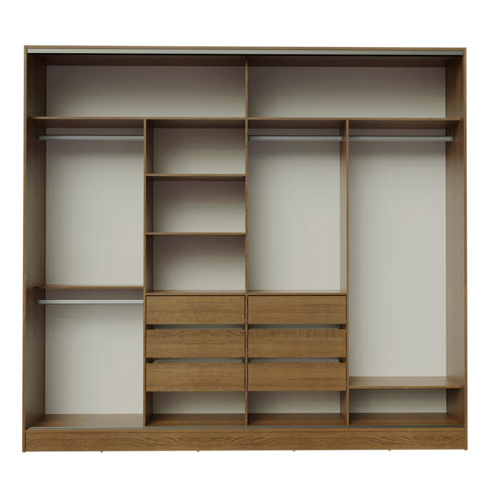 O Guarda-Roupa Casal Cronos da Madesa tem como grande destaque o tamanho avantajado e a disposição interna com seis gavetas e espaço de sobra.Conta com quatro cabideiros metálicos muito resistentes e diversos nichos e prateleiras que permitem uma melhor organização de roupas, travesseiros, malas, calçados e o que mais você necessitar.Os puxadores ocupam toda a extensão das portas e são fabricados em alumínio, assim como o trilho superior e inferior. Além disso, as portas possuem sistema que evita o descarrilhamento, evitando acidentes.Medidas totais: 217 cm de altura x 238 cm de largura x 55 cm de profundidade.O acabamento interno e externo é no padrão amadeirado Rustic e as costas são brancas. É feito em Pintura Poliéster ecológica que protege e conserva o móvel por mais tempo.Imagens meramente ilustrativas. A decoração não acompanha o produto.Itens inclusos:- Quatro (4) portas de correr de MDP com puxadores em alumínio, sendo duas com espelhos- Quatro (4) cabideiros metálicos- Seis (6) gavetas com corrediças metálicas- Oito (8) prateleirasCódigo do produto: 11685Z2EObs: A Madesa não disponibiliza serviço de montagem. O produto segue com manual de instalação e todas as ferragens necessárias para sua montagem.1 – O produto é novo ou usado?R.: Todos os produtos da Madesa são novos, enviados da nossa fábrica diretamente para as casas de nossos clientes.2 – O produto vem montado? Se não, vocês realizam a montagem?R.: A Madesa não disponibiliza serviço de montagem. Todos os produtos seguem com manual de instalação e as ferragens necessárias. Alguns produtos possuem vídeo explicando o passo a passo da montagem.3 – Vocês possuem loja física? Posso retirar meu produto em mãos?R.: Não possuímos loja física, apenas loja virtual. Confira as opções de envio ao colocar o seu CEP.4 – Qual é o valor do envio? Posso pagar separadamente?R.: O valor do envio é calculado com base no peso e volume do produto, e no CEP de destino. Você pode calcular o valor e prazo de entrega no simulador.5 – A Madesa entrega em todo Brasil? Como é feita a entrega?R.: Sim, entregamos no Brasil inteiro através de transportadoras parceiras.6 – O produto acompanha Nota Fiscal?R.: Sim, todos os produtos são entregues com suas respectivas notas fiscais.7 – Os produtos possuem garantia?R.: Sim. A Madesa oferece 3 meses de garantia para defeitos de fabricação.A Madesa se dedica à sustentabilidade com várias iniciativas: temos uma usina própria para gerar energia que abastece uma de nossas fábricas. Selecionamos nossos fornecedores, priorizando aqueles que possuem um compromisso com a sustentabilidade e proteção do meio ambiente. Todo o plástico utilizado no setor produtivo é proveniente de reciclagem e as suas sobras são encaminhadas ao fornecedor que os recicla. Também investimos no desenvolvimento contínuo de nossos colaboradores e em ações educacionais que beneficiem a comunidade.
