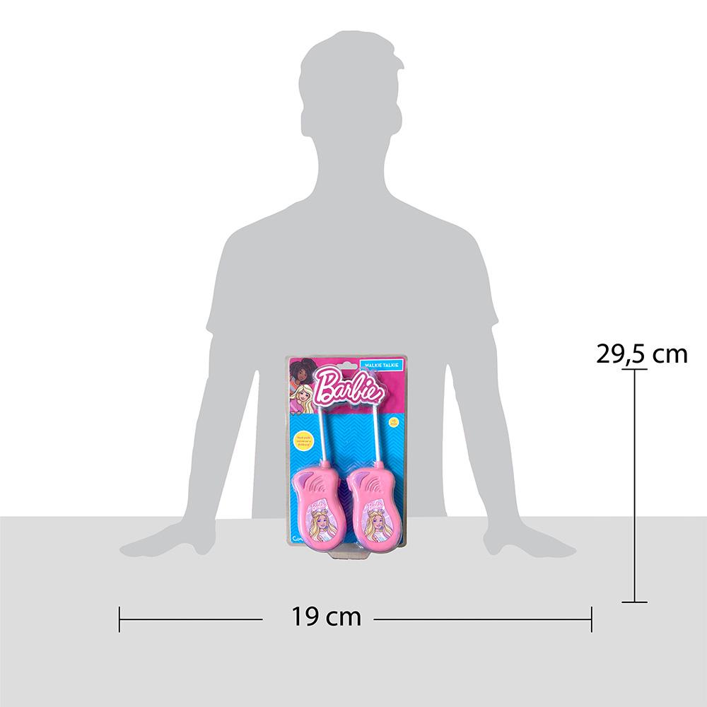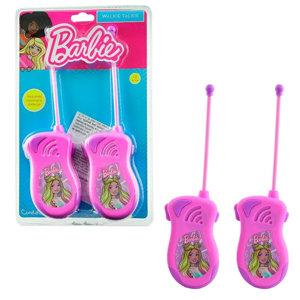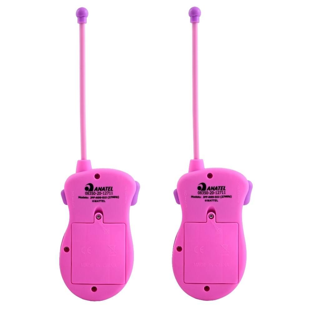 Com o Walkie Talkie infantil Barbie você pode explorar o mundo, criar diversas aventuras e o mais incrível é poder compartilhar tudo isso com seus amigos! Este divertido Walkie Talkie possui um design super fashion e você ainda poderá levá-lo para onde quiser com o clipe que o prende ao corpo. Conversar com seus amigos à distância vai ficar muito mais legal com esse par de Walkie Talkies Barbie! Alcança até 5 metros. Resumindo: • Com o Walkie Talkie infantil Barbie você pode explorar o mundo, criar diversas aventuras e o mais incrível é poder compartilhar tudo isso com seus amigos! • Este divertido Walkie Talkie possui um design super fashion e você ainda poderá levá-lo para onde quiser com o clipe que o prende ao corpo. • Conversar com seus amigos à distância vai ficar muito mais legal com esse par de Walkie Talkies Barbie! • Alcança até 5 metros. Obs : Walkie Talkies são brinquedos eletrônicos e sua funcionalidade são passíveis de sofrerem interferências de outros produtos eletrônicos como lâmpadas fluorescentes, rádios, celulares rede elétrica e outras fontes geradoras de interferência. Que o seu melhor desempenho se dá em locais abertos, longes de fontes de interferências e de barreiras e o seu alcance nestas condições gira em torno de 5 metros.