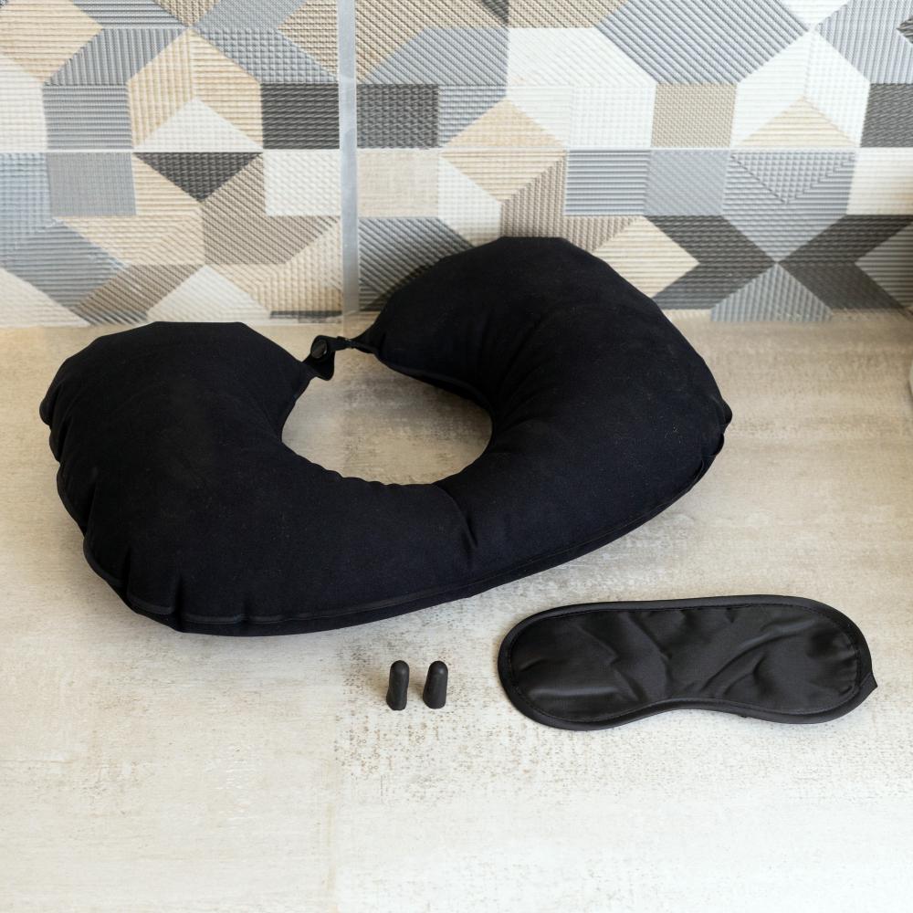 Kit Viagem com Travesseiro Lyor de Poliuretano Preto