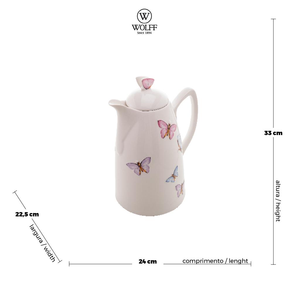 Garrafa Térmica Wolff Borboletas de Porcelana Branco 900ml