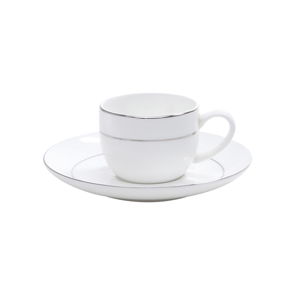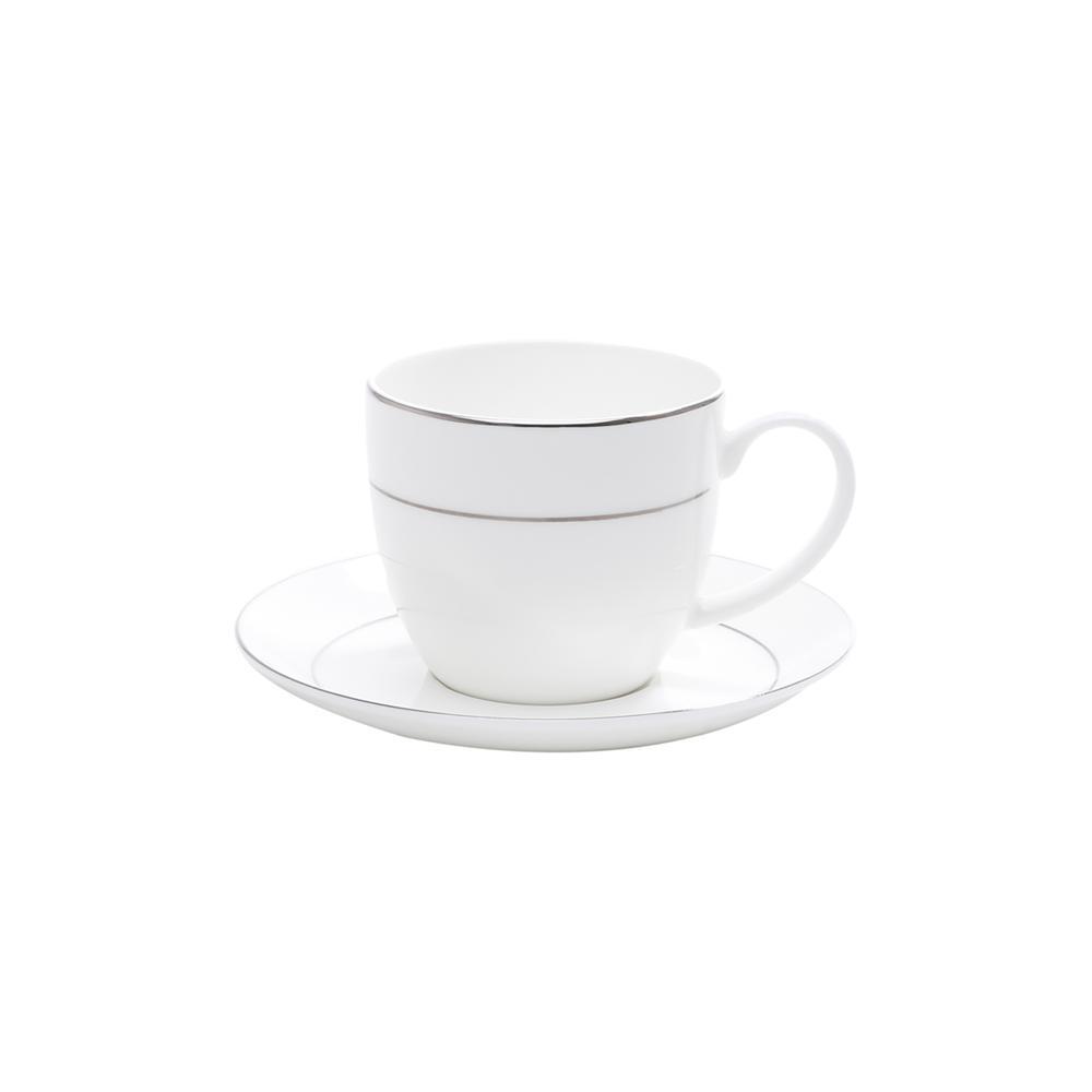 Aparelho de Jantar 42 Pçs Porcelana Borda Prateada Mônaco