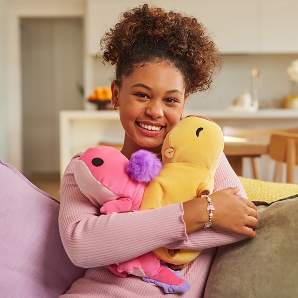 A Pelúcia Hug-A-Lumps Pequena 0,75kg é perfeita para quem busca conforto com um toque de diversão. Com peso suave e acolhedor, ela proporciona a sensação de um abraço de verdade, ajudando a aliviar o estresse e trazendo bem-estar em qualquer momento do dia. Feita com pelúcia supermacia, é ideal para relaxar, dormir melhor ou simplesmente curtir o carinho de um amigo fofinho.São 7 personagens encantadores para conhecer: Lagosta Lenny, Vaca Marrom Holly, Vaca Clover, Urso Marinho Sage, Peixe-Bolha Bob, Capivara Connie e Axolote Ally — cada um com seu próprio estilo, cores vibrantes e muita personalidade. Compacta e fácil de levar para onde quiser, a Hug-A-Lumps Pequena é a companhia perfeita para todas as idades. Mais do que uma pelúcia, é um abraço que reconforta, acalma e encanta.