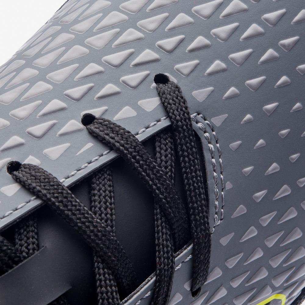 Com um design ousado e irreverente, a Chuteira Society Umbro Mutant exibe arte gráfica personalizada com jogo de cores contrastantes e tom sobre tom. Indicada para jogadores iniciantes, o modelo conta com textura em alto relevo para auxiliar o controle e domínio da bola no gramado sintético.Cabedal assimétrico confeccionado em material laminado com alta frequência e grafismo em serigrafia de 3 cores. Possui forro traseiro em Mesh com acabamento superior luvado, maxi Diamante Umbro Outline na lateral com assinatura do modelo e palmilha interna em EVA conformado para proporcionar um calce macio. O solado Agile de society HG é construído em borracha para maior durabilidade e aderência ao solo.