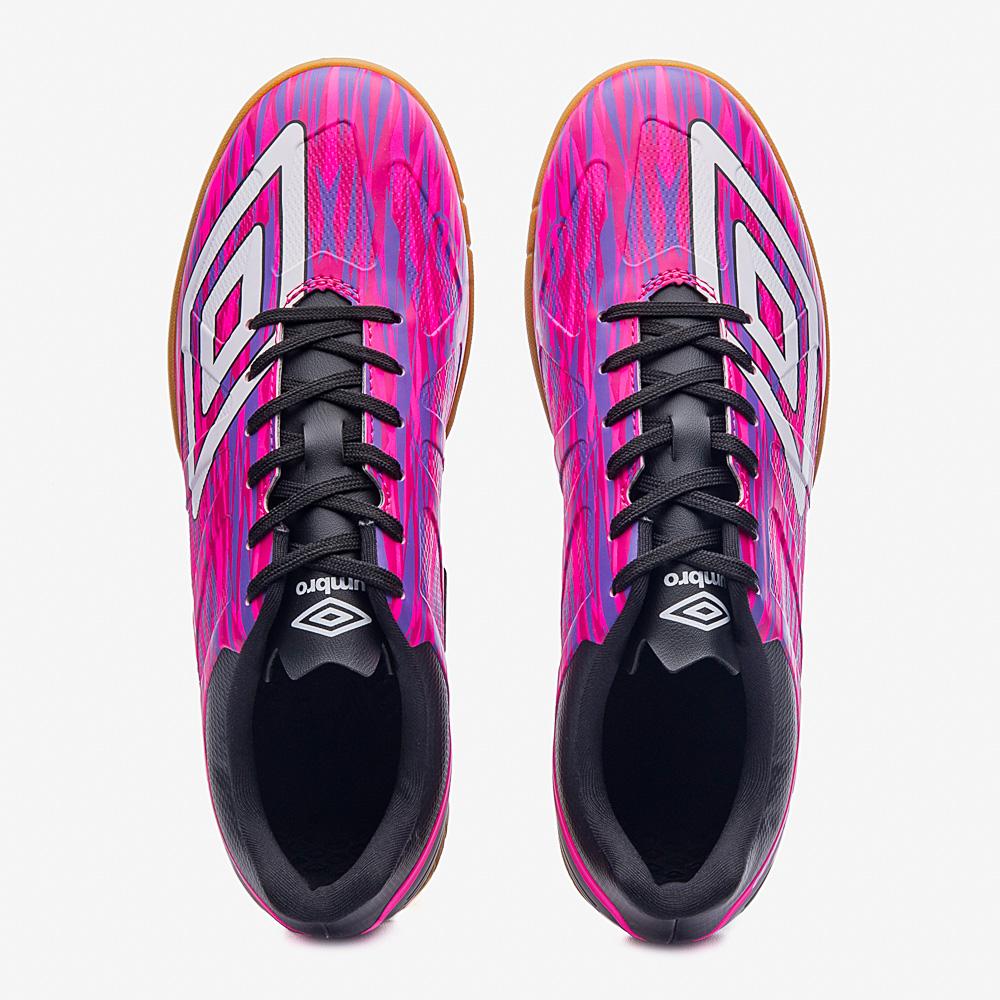A Chuteira Society Umbro Ultimate foi desenvolvida com inspiração nas últimas tendências do cenário futebolístico, exibindo um visual arrojado que se destaca pelas artes gráficas exclusivas com cores vivas e modernas. Indicada para jogadores iniciantes que procuram por uma chuteira estilosa para dominar o jogo nas quadras.Cabedal assimétrico construído em material laminado emborrachado liso, com toque macio, e detalhes em janelas de alta frequência. Possui forro traseiro em Mesh com acabamento superior luvado, grafismo camuflado geométrico em serigrafia, maxi Diamante Umbro aplicado na região frontal, assinatura do modelo na lateral externa da parte posterior e palmilha interna em EVA conformado para maior conforto. O solado Agile de futebol indoor é composto por borracha, que garante maior aderência e durabilidade.