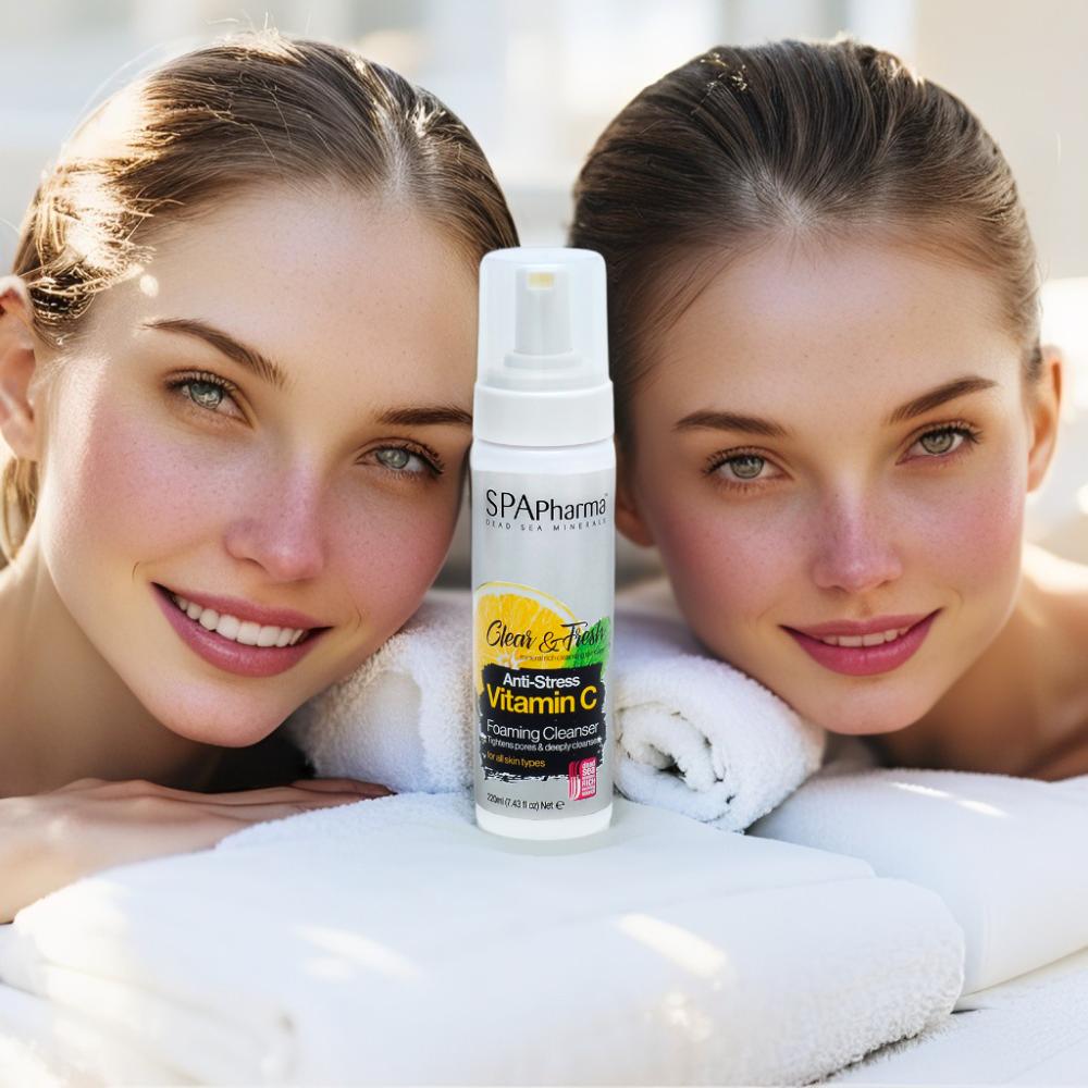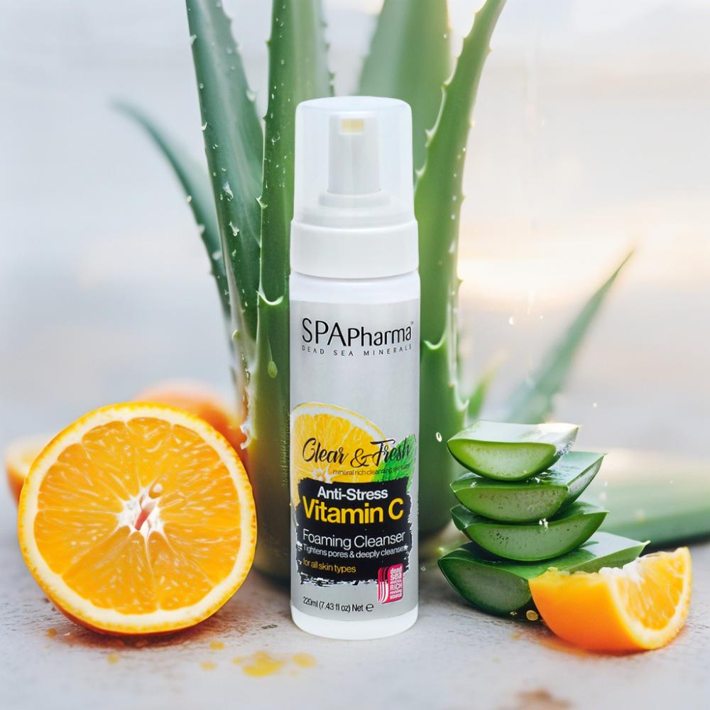 Espuma de Limpeza com Vitamina C da SPA Pharma 220ml – Minerais do Mar MortoDescrição:A Espuma de Limpeza Facial com Vitamina C da SPA Pharma remove impurezas, oleosidade e resíduos sem ressecar, deixando a pele iluminada e revigorada. Enriquecida com minerais do Mar Morto e Vitamina C e Aloe Vera estabilizada, ela limpa profundamente enquanto ajuda a uniformizar o tom da pele, restaurar o brilho natural e preparar o rosto para os próximos cuidados. Benefícios:Limpa profundamente sem agredir nem ressecar a peleAjuda a uniformizar o tom e iluminar o rostoRemove oleosidade e resíduos acumulados ao longo do diaEnriquecida com minerais do Mar Morto para revitalização imediataSensação de frescor e maciez após o usoPrepara a pele para melhor absorção dos próximos tratamentos Modo de uso:Aplique uma pequena quantidade da espuma nas mãos e massageie suavemente sobre o rosto úmido, evitando a área dos olhos. Enxágue bem com água. Utilize diariamente, de manhã e à noite, para obter melhores resultados.