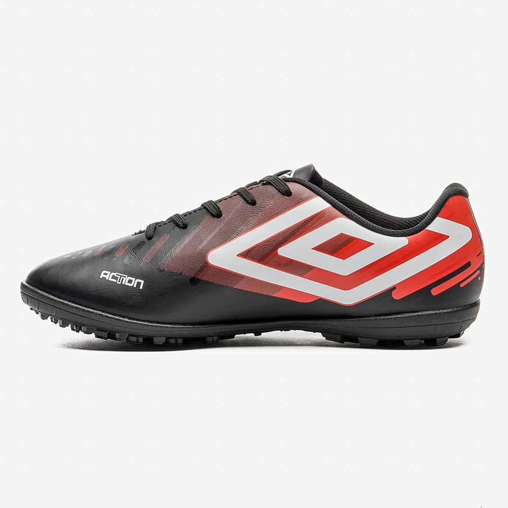 Indicada para jogadores iniciantes que se destacam dentro das quadras de society, a Chuteira Society Umbro Action exibe artes gráficas personalizadas aplicadas em camadas, com efeito degradê, que oferecem um visual autêntico e moderno no melhor estilo Umbro. Cabedal confeccionado em material laminado. Possui grafismos em “layers” com aplicação de verniz incolor sobre as artes, Diamante Umbro em destaque na lateral, assinatura do modelo na parte frontal e palmilha interna macia em EVA com tecido forrado. O solado de society HG é composto por blenda de PVC e TPU, que oferece tração e durabilidade.
