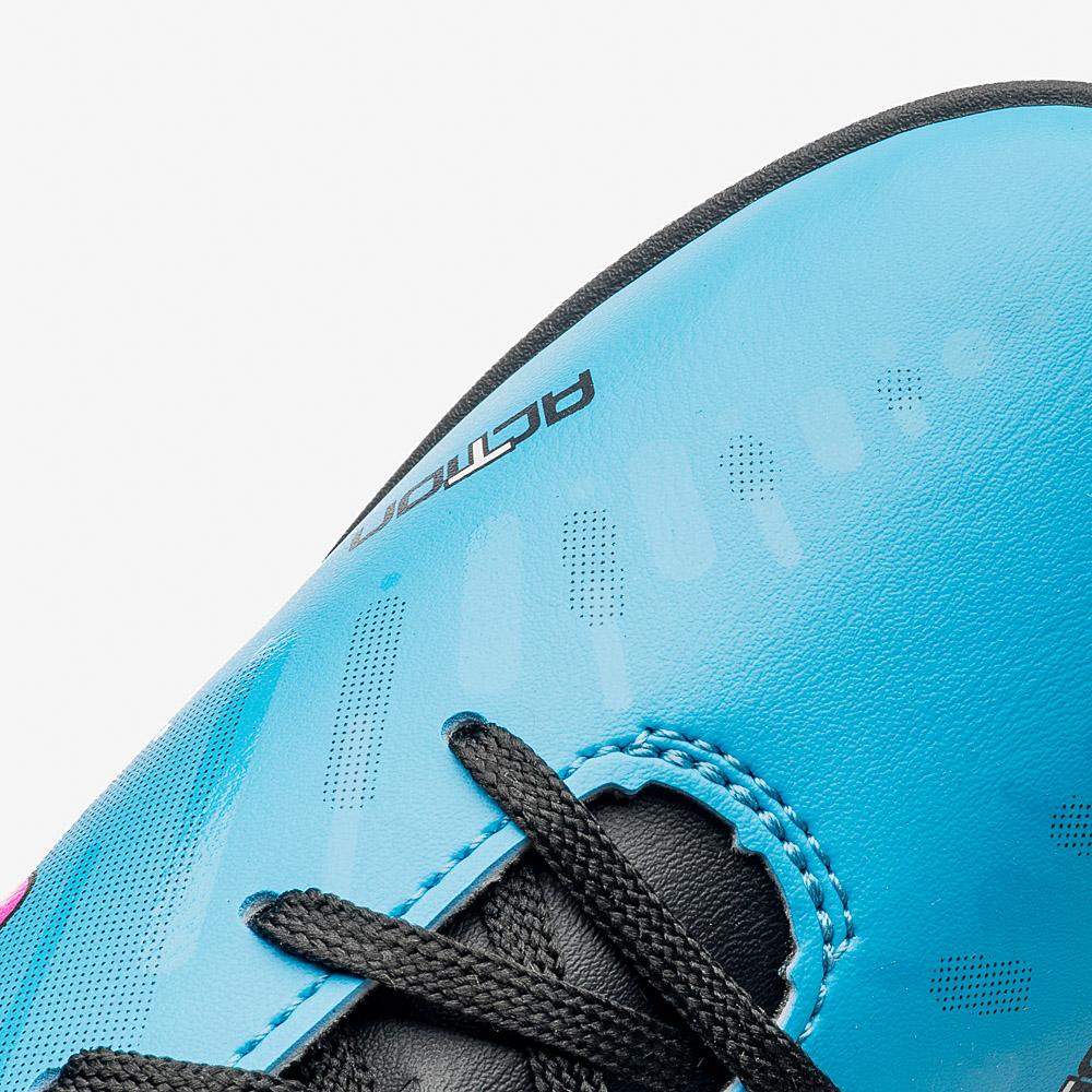 Indicada para jogadores iniciantes que se destacam dentro das quadras de society, a Chuteira Society Umbro Action exibe artes gráficas personalizadas aplicadas em camadas, com efeito degradê, que oferecem um visual autêntico e moderno no melhor estilo Umbro.Cabedal confeccionado em material laminado. Possui grafismos em “layers” com aplicação de verniz incolor sobre as artes, Diamante Umbro em destaque na lateral, assinatura do modelo na parte frontal e palmilha interna macia em EVA com tecido forrado. O solado de society HG é composto por blenda de PVC e TPU, que oferece tração e durabilidade.