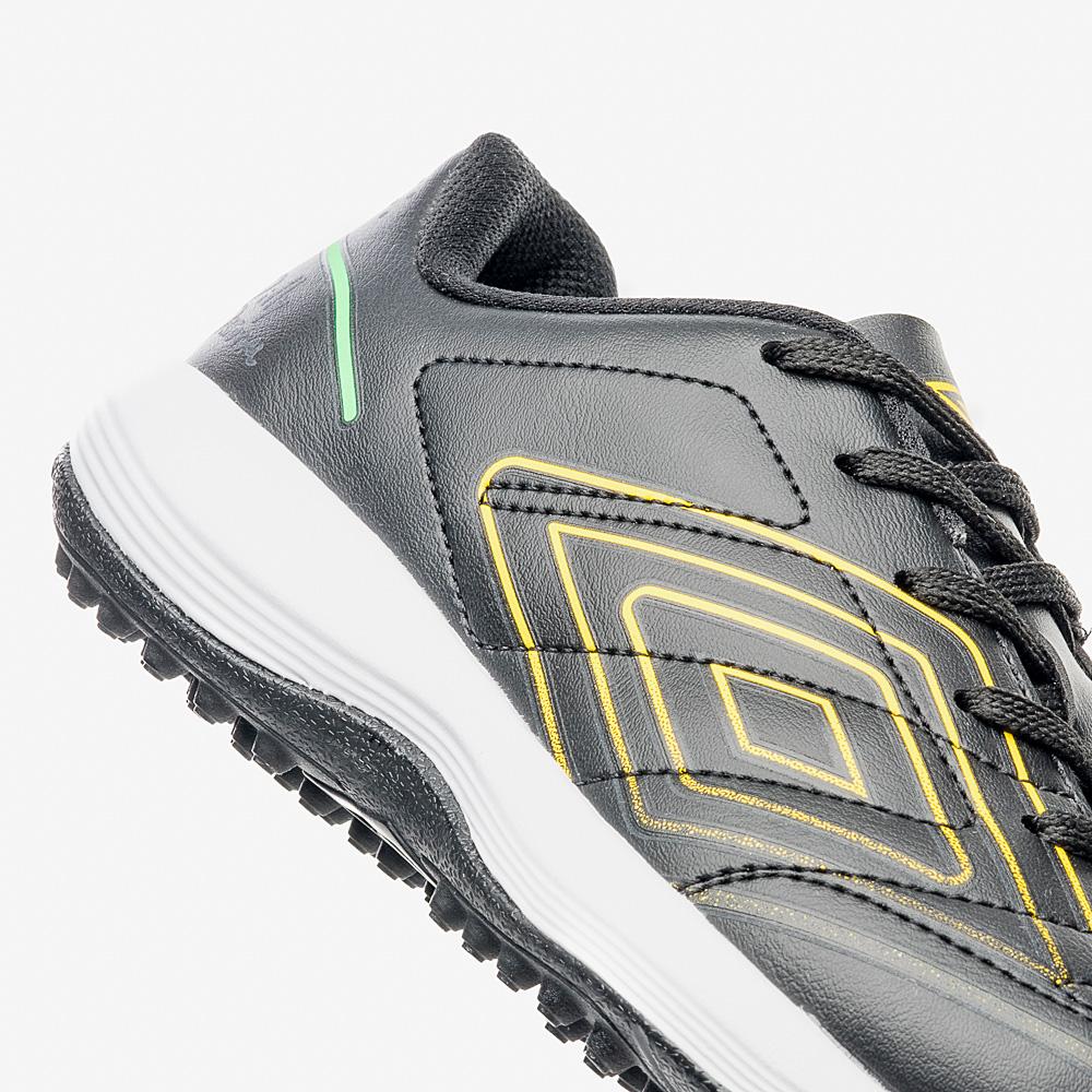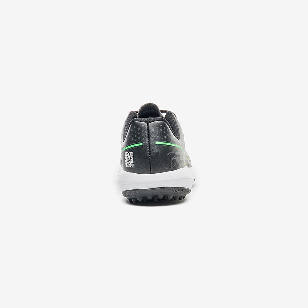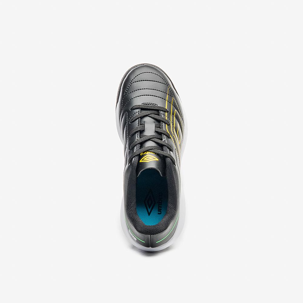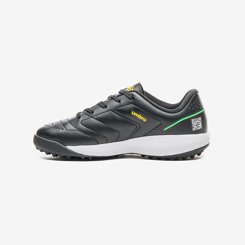 Desenvolvida em parceria com o Billy do canal BRFUTSAL, um dos criadores de conteúdo mais influentes do universo do futebol, a Chuteira Society Umbro BR Futsal Jr segue a mesma estética do modelo adulto e oferece conforto, estilo e durabilidade para impulsionar os mini craques a alcançarem o seu melhor desempenho no society. O cabedal (parte superior do calçado) é construído em material laminado emborrachado com grafismo exclusivo e costuras programadas de reforço. Possui assinatura do Billy, QR Code que direciona o jogador para a mídia social do BRFUTSAL, sistema de lingueta convencional e Diamante Umbro Outline aplicado em serigrafia para um toque moderno. O solado de society é composto por TPU monocolor com sistema de travas cônicas e entressola macia em EVA.