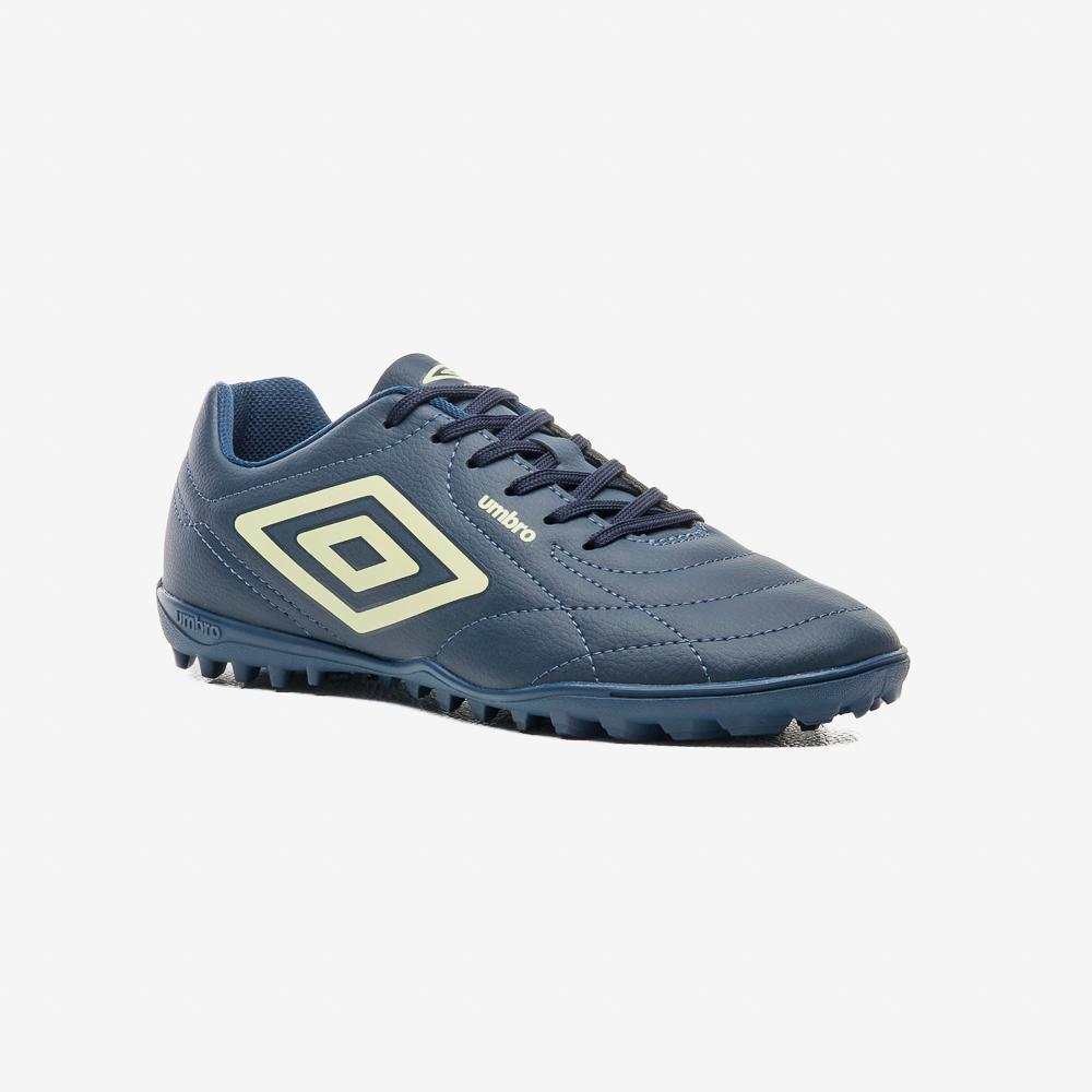 Chuteira Society Umbro Class Footballer: Desempenho e Estilo em CampoSe você busca uma chuteira que una qualidade, conforto e um design renovado, a Chuteira Society Umbro Class Footballer é a escolha perfeita. Ideal para jogadores de nível intermediário, este modelo consagrado da Umbro promete elevar seu desempenho nas partidas de futebol society.Design e ConfortoA Chuteira Society Umbro Class Footballer apresenta um visual moderno, mantendo a elegância do design clássico. Seu cabedal é confeccionado em material laminado com textura de couro relax, que não apenas garante durabilidade, mas também proporciona um toque suave e confortável ao calçar. As costuras programadas e o aplique de artes gráficas em serigrafia conferem um acabamento sofisticado e diferenciado, enquanto o logo Diamante centralizado na lateral destaca a autenticidade da marca. Performance SuperiorEquipadas com uma palmilha interna em EVA, as Chuteiras Society Umbro Class Footballer oferecem um conforto excepcional, absorvendo impactos e proporcionando uma sensação de leveza durante o jogo. O solado em PVC, com travas em barra e chevron, garante uma tração ideal em campos de grama sintética, permitindo que você se mova com agilidade e segurança, independentemente das condições do campo.Por Que Escolher a Chuteira Society Umbro Class Footballer?Escolher a Chuteira Society Umbro Class Footballer é optar por um produto que alia tradição e inovação. Ideal para jogadores que desejam se destacar, esta chuteira não só melhora sua performance em campo, mas também oferece um estilo inconfundível. Com um design que chama a atenção e funcionalidades que atendem às necessidades dos atletas, este modelo é um investimento certeiro para quem leva o futebol a sério.Adquira Já a Sua!