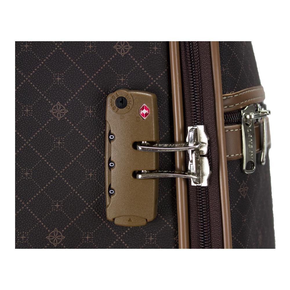 A mala de bordo da Linha Munique é perfeita para viagens curtas ou para levar a bordo nas viagens de avião, pois suas medidas estão adequadas aos novos padrões da ANAC*.O exterior da mala de bordo é confeccionado em vinil com textura e estampa exclusiva, material resistente e fácil de limpar. O interior é 100% forrado em poliéster com tratamento de impermeabilização, possui bolso interno em tela fechado com zíper e cintas elásticas para prender os pertences. O corpo da mala é semirrígido, com frente reforçada com polietileno expandido. A traseira e o fundo são reforçados com polietileno rígido. A mala de viagem possui sistema de puxador retrátil com regulagem de altura, rodinhas com giro 360º para facilitar a mobilidade, além de cadeado TSA** acoplado. Confeccionada em vinil com textura e estampa exclusiva.Frente reforçada com polietileno expandidoFundo, parte superior e traseira reforçados com placa de polietileno rígido100% forrada em poliéster com tratamento de impermeabilizaçãoBolso frontal com fechamento em zíperAlça de mão acolchoadaRodas com sistema 360ºPuxador telescópico com regulagem de altura Ferragens niqueladasCadeado TSA acoplado *Garantia de 2 anos contra defeitos de fabricaçãoAssistência técnica com peças originaisIndústria BrasileiraMedidas:45 (A) x 35 (L) x 25 (P) cmMedidas com rodas e alça de mão: 55 (A) x 35 (L) x 25 (P) cmPeso: 3, 150 Kg