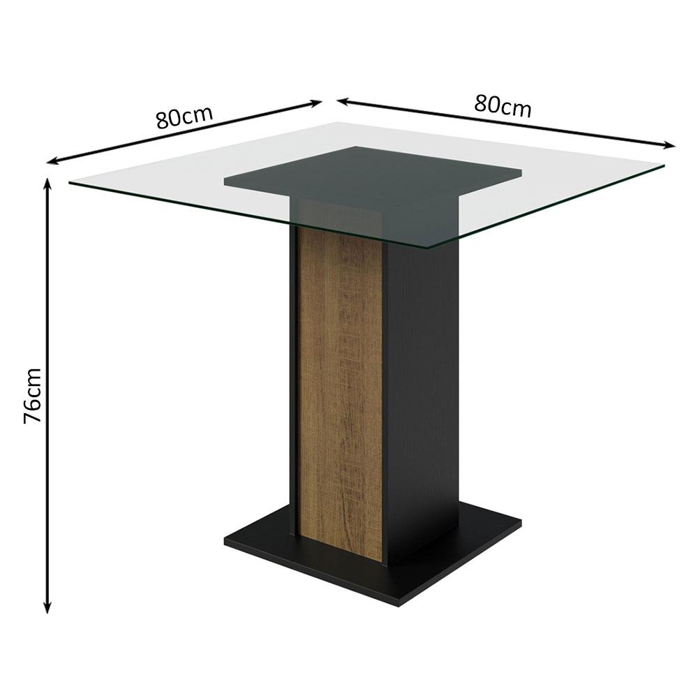 A mesa em pedestal é confortável e o tampo de vidro amplia o ambiente, além de enobrecer o produto. É a opção ideal para quem tem pouco espaço e fica perfeita tanto na cozinha e na sala de jantar. O formato quadrado facilita a circulação e permite acomodar as pessoas de forma aconchegante.O acabamento combina os tons preto e amadeirado Rustic e é feito em Pintura Poliéster ecológica de 7 camadas que oferecem maior durabilidade ao móvel.Medidas totais da mesa: 80 cm de largura x 80 cm de profundidade x 77 cm de altura.Itens inclusos:- Uma (1) mesa em pedestal com tampo de vidroCódigo do produto: 5332D82AObs: A Madesa não disponibiliza serviço de montagem. O produto segue com manual e todas as ferragens necessárias para a instalação.1 – O produto é novo ou usado?R.: Todos os produtos da Madesa são novos, enviados da nossa fábrica diretamente para as casas de nossos clientes.2 – O produto vem montado? Se não, vocês realizam a montagem?R.: A Madesa não disponibiliza serviço de montagem. Todos os produtos seguem com manual de instalação e as ferragens necessárias. Alguns produtos possuem vídeo explicando o passo a passo da montagem.3 – Vocês possuem loja física? Posso retirar meu produto em mãos?R.: Não possuímos loja física, apenas loja virtual. Confira as opções de envio ao colocar o seu CEP.4 – Qual é o valor do envio? Posso pagar separadamente?R.: O valor do envio é calculado com base no peso e volume do produto, e no CEP de destino. Você pode calcular o valor e prazo de entrega no simulador.5 – A Madesa entrega em todo Brasil? Como é feita a entrega?R.: Sim, entregamos no Brasil inteiro através de transportadoras parceiras.6 – O produto acompanha Nota Fiscal?R.: Sim, todos os produtos são entregues com suas respectivas notas fiscais.7 – Os produtos possuem garantia?R.: Sim. A Madesa oferece 3 meses de garantia para defeitos de fabricação.A Madesa se dedica à sustentabilidade com várias iniciativas: temos uma usina própria para gerar energia que abastece uma de nossas fábricas. Selecionamos nossos fornecedores, priorizando aqueles que possuem um compromisso com a sustentabilidade e proteção do meio ambiente. Todo o plástico utilizado no setor produtivo é proveniente de reciclagem e as suas sobras são encaminhadas ao fornecedor que os recicla. Também investimos no desenvolvimento contínuo de nossos colaboradores e em ações educacionais que beneficiem a comunidade.