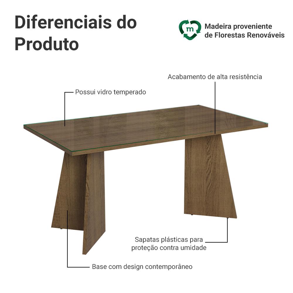 Mesa de Jantar Retangular Tampo de Vidro 5389 Rustic Madesa
