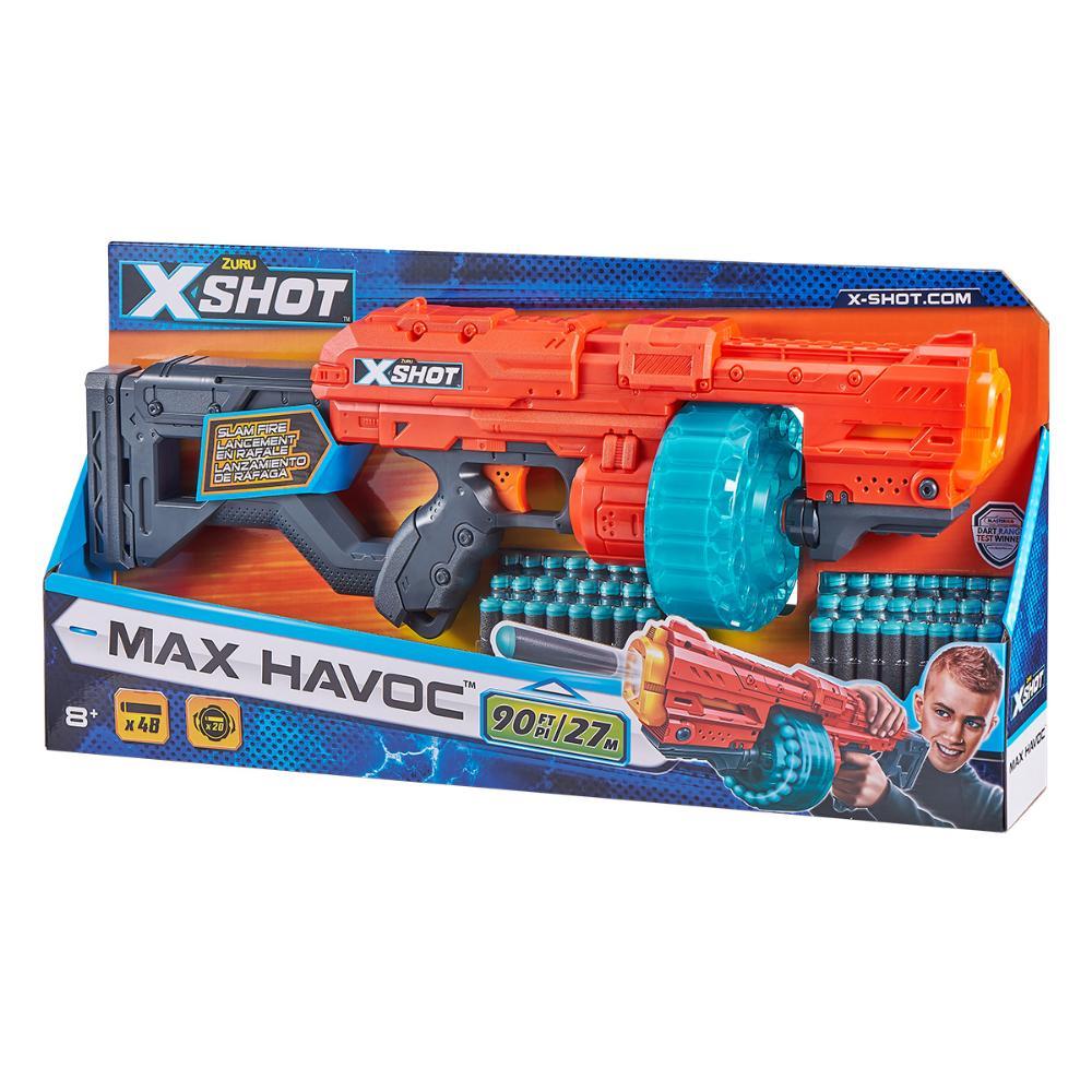 O novo lançador X-Shot Max Havoc é o que todo fã de lançadores sonhou! Este lançador é perfeito para divertidas aventuras! Ele tem a função de disparo único e um tambor giratório com capacidade de 20 dardos que alcança até 27 metros de distância com alta precisão! E quando a disputa ficar intensa, é só liberar o tambor rotativo com o seu mecanismo Slam Fire e derrotar o seu oponente! Com o lançador X-Shot Max Havoc a brincadeira vai ficar muito mais emocionante! Acompanha 48 dardos de espuma. Lançador compatível com os principais dardos do mercado. Resumindo: • O novo lançador X-Shot Max Havoc é o que todo fã de lançadores sonhou! • Este lançador é perfeito para divertidas aventuras! • Ele tem a função de disparo único e um tambor giratório com capacidade de 20 dardos que alcança até 27 metros de distância e alta precisão! • E quando a disputa ficar intensa, é só liberar o tambor rotativo com o seu mecanismo Slam Fire e derrotar o seu oponente! • Com o lançador X-Shot Max Havoc a brincadeira vai ficar muito mais emocionante! • Acompanha 48 dardos de espuma. O lançador compatível com os principais dardos do mercado.