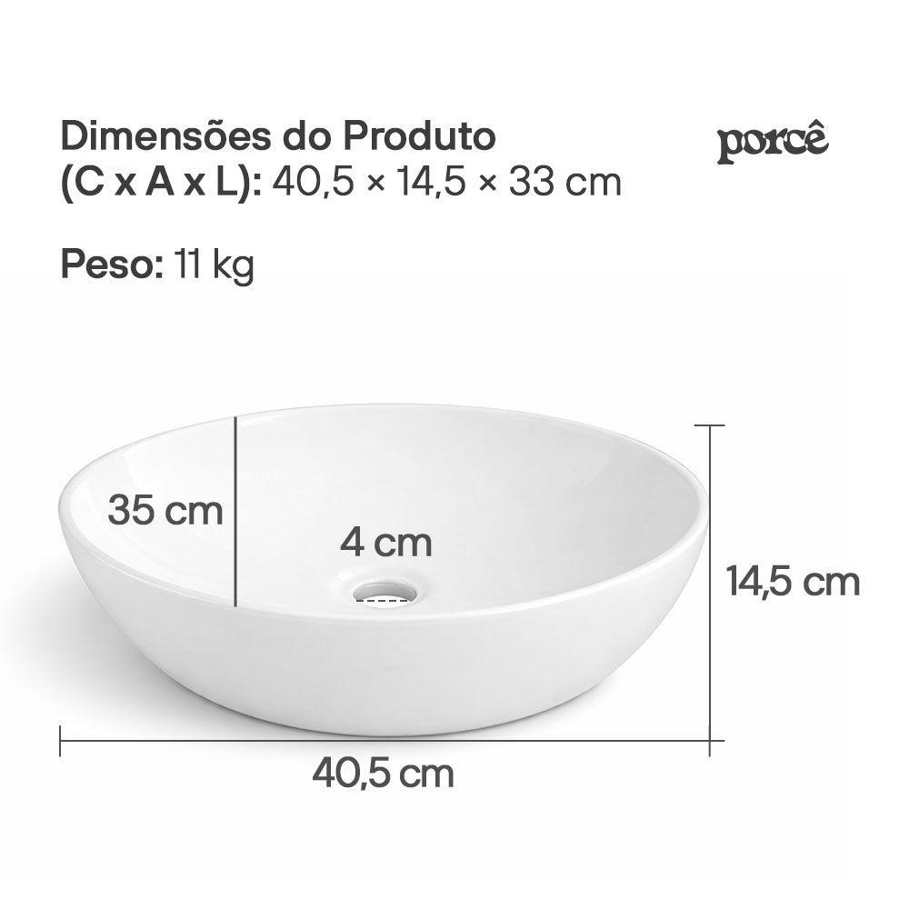 CUBA DE SOBREPOR PORCÊ SERENA (PCC4025A-BR)A Cuba de Sobrepor Porcê Serena foi desenvolvida para quem busca unir sofisticação, durabilidade e um design moderno no banheiro ou lavabo. Com formato oval e acabamento esmaltado brilhante, ela entrega um visual elegante que se destaca em bancadas de diversos estilos, desde ambientes clássicos até projetos mais contemporâneos.Produzida em cerâmica de alta qualidade, a Cuba Serena oferece resistência, fácil higienização e longa vida útil. Seu formato ergonômico e proporções equilibradas garantem conforto no uso diário, além de otimizar o espaço da bancada. Por ser uma cuba de apoio, a instalação é simples e prática, valorizando o ambiente e proporcionando um toque premium ao décor.Com 40,5 cm de comprimento e apenas 14,5 cm de altura, ela se adapta perfeitamente a banheiros residenciais e comerciais. A superfície esmaltada facilita a limpeza e evita manchas, permitindo que a cuba permaneça com aparência de nova por muito mais tempo.A Cuba Serena é uma escolha ideal para quem deseja renovar o banheiro com estilo, eficiência e um acabamento impecável.Características• Ideal para o seu banheiro: possui design oval moderno e elegante.• Resistente e de alta qualidade: material em cerâmica com acabamento esmaltado de alta durabilidade.• Instalação de apoio: prática e compatível com diversos estilos de banheiro.• Fácil limpeza: superfície lisa que evita acúmulo de resíduos.• Prática para o dia a dia: ideal para ambientes residenciais e comerciais.Dúvidas Frequentes1. Qual tipo de válvula é indicado?A recomendação é utilizar uma válvula de 1 1/4 polegadas.2. A limpeza é fácil?Sim. Basta utilizar pano macio, água e sabão neutro, Itens abrasivos não são recomendados.3. Pode ser instalada em banheiro comercial?Sim. O modelo é indicado tanto para uso residencial quanto comercial.4. A cuba acompanha torneira?Não. A cuba não acompanha torneira.5. A cuba vem com kit de instalação ou válvula?Não. A válvula e demais itens devem ser adquiridos separadamente.Especificações TécnicasMarca: PorcêModelo: SerenaCódigo: PCC4025A-BRMaterial: CerâmicaAcabamento: EsmaltadoCor: BrancoForma: OvalVálvula indicada: 1 1/4 polegadasInclui torneira: NãoInclui válvula: NãoIndicação de Uso: Comercial; ResidencialAplicação: SobreporInstruções de Limpeza: Pano macio, água e sabão neutro.Peso Bruto: 12 kgPeso Líquido: 11 kgDimensões do Produto (C × A × L): 40,5 × 14,5 × 33 cmDimensões da Embalagem (C × A × L): 42,5 × 16,5 × 35 cmItens Inclusos: 1 Cuba de PorcelanaGarantia: 12 meses contra defeito de fabricação