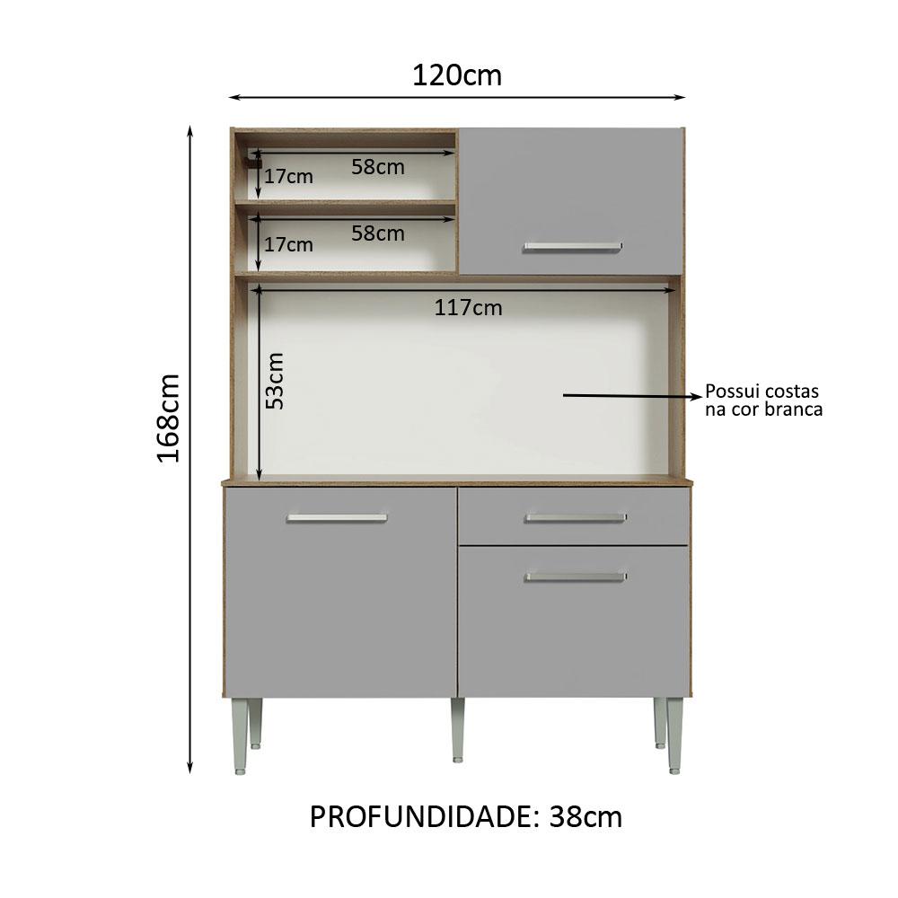 Armário de Cozinha Compacta 120cm Rustic/Cinza Life Madesa