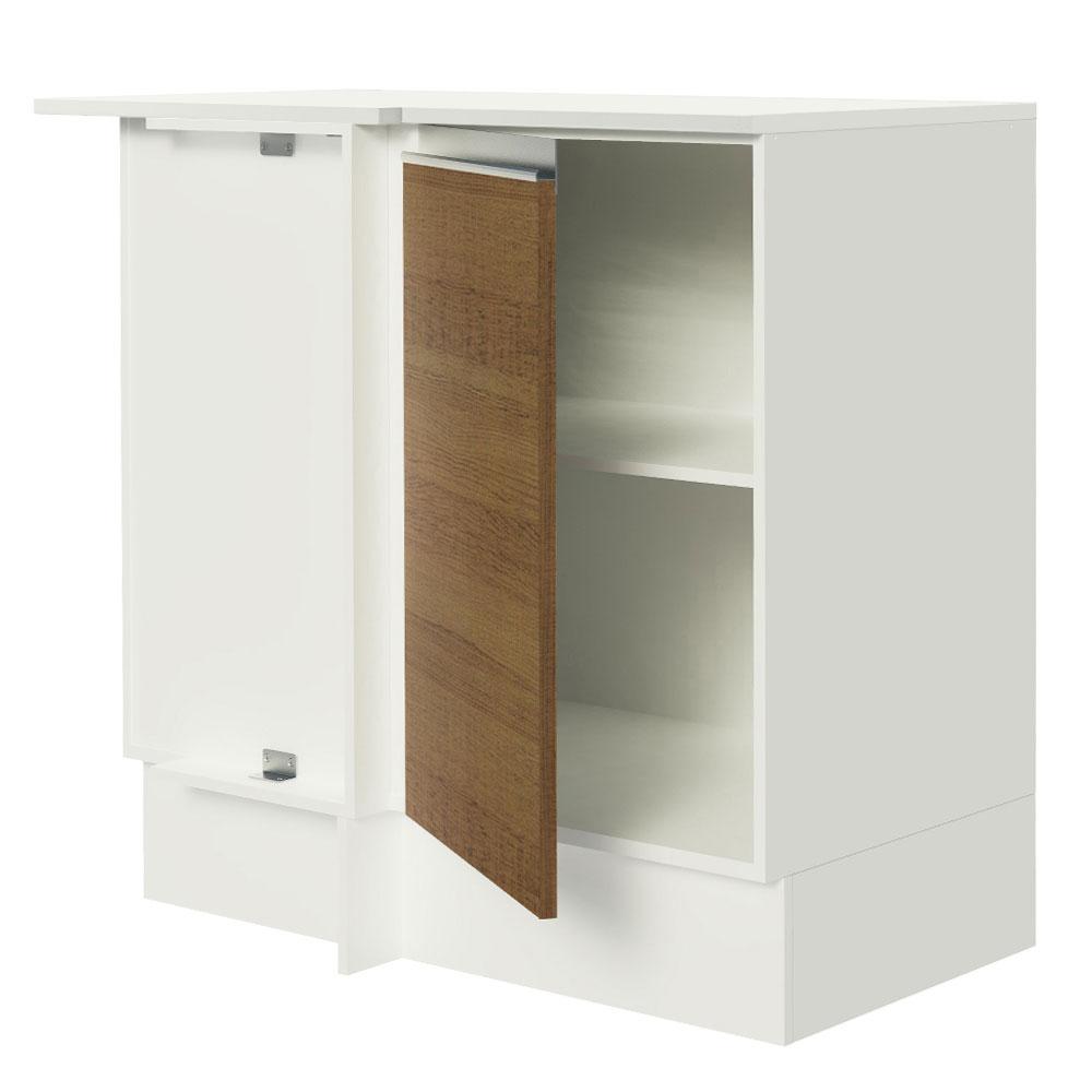 Balcão Armário de Cozinha de Canto 100% MDF com Tampo 1 Porta Branco/Rustic Smart Madesa