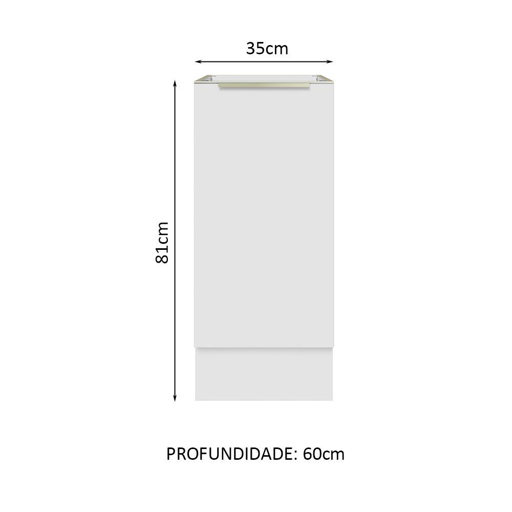 Balcão Madesa Lux 35 cm 1 Porta (Sem Tampo) - Branco/Branco Veludo