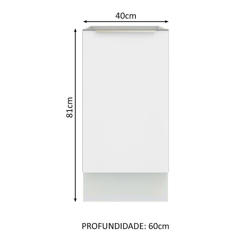 Balcão Madesa Lux 40 cm 1 Porta (Sem Tampo) - Branco/Branco Veludo